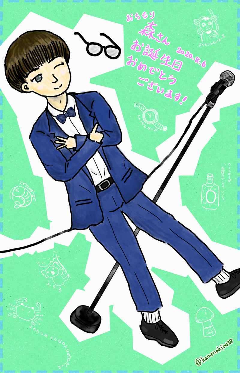 kamenaki0428☆quiet followPAST2020年森さん誕生日用イラスト。誕生日直前に裸眼になされて困った。背景は好きな「切なギャグ」を散りばめている。 Tap to full screen (size:2530x3932).Repost is prohibited Let's send reactions! freqpopularsnackothersPayment processing Replies from the creator Follow creator you care about!☆quiet follow kamenaki0428DOODLE某事務所ステッカー風なおちもりさん。よ〇もとの劇場に出向く機会なんてないので大急ぎで描きました。リアルめになってしまったので次はもっと可愛くデフォルメしたい。 2 kamenaki0428DOODLE深夜らくがき。元ヤマハ生としては好きすぎるギャグです。切なギャグのファンアートは増えそう(ない)。明日ぐらいに公式動画上がりそうな予感なのでぜひ元ネタ見て頂きたいです…(追記)上がりました→https://www.youtube.com/watch?v=eQN-dOhpIIc&t=28sちなみにヤマハ系曲で一番好きなのは「にじいろのうた」です(ググった)。 kamenaki0428PAST2018年に初めてイラレで描いた。キラキライブ用イラスト。画力はともかくとして構図が好き。 kamenaki0428PASTジョシ全開での、とりちゃん化した森さんが面白すぎたので描いた落書き。「俺の中のとりちゃんが目覚めた」 kamenaki0428PAST2020年の年賀状。起き上がりこぶし的なデフォルメ。 2 kamenaki0428PAST長山さんをタピオカひとつぶちゃんにしたくなりすぎて。ながやまひとつぶちゃん。