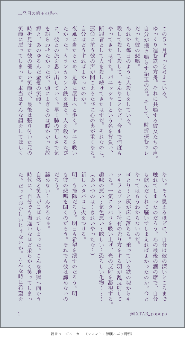 いしゅたむ☆quiet followDOODLEWV(牧台)牧→台牧師の独白と決意8巻の方舟の中ヴァッシュ出てきません #牧台 pastoralTerrace #WV show all(+1 images) Tap to full screen (size:618x1132).Repost is prohibited Let's send reactions! freqpopularsnackothersPayment processing Replies from the creator Follow creator you care about!☆quiet follow いしゅたむDOODLEWV(牧台)旅の途中で辛い思いも甘いもので消し込んで。ヴァッシュ生誕祭向けに書いたけどそんなお祝い感ない 6 いしゅたむDOODLEWV(牧台)セフレからはじまってる。W→←Vな感じだけどすれ違ってるしギスってる。ここから仲良くなる保険ありますかね…(弱気イチャラブゴールまでがんばります… 6 いしゅたむDOODLEWV(牧台)注意)暗い!!!!気がつくまでは、やさしい空間 3 いしゅたむDOODLEWV(牧台)原作後、一応死ネタです。個人的にハッピーエンド。長年の凝り固まった感情を書きなぐったらアホみたいに長くなりました。ごめんなさい。笑顔が呪いではなく祝福になりますように 19 いしゅたむDOODLEWV(牧台)8から10巻にかけて互いに好きを自覚する話ヴァが女々しい正直ここしか仲良くさせられる気がしなかったので力技感ある 13 いしゅたむDOODLEWV(牧台)注意)原作後です捏造甚だしいですあとすごい、つらいですそれでも彼は、寄り添い続けるんだと思います。 7 related works AshWednesday025DONEワンライ『怖いもの』原作後牧台WV、孤児院で暮らすふたり。ちょっと仄暗いってかノイローゼ気味。開催いつもありがとうございます!いつもの調子であーる付になっちゃったので;お題だけお借りしました。18↑? yes/no 6 NnNDOODLEWV NSFW! 2 birakDOODLE #WV NSFWWARNING : BondageFrom the reversible fanAre y +18? 3 dekopon_koPASTらんまが再アニメ化のニュースを見てそういえばらんまネタのWV書いてたなって 5700 tri_0327DONE葬台前提で触手×スタVを書きました。特殊性癖なので、ご注意ください。一応、HappyEndにしたつもりです。設定など捏造あり。pass18歳以上ですか? 7305 ジャげぇもDOODLENSFW🔞牧台イラマ濁点、嗚咽注意 2 umeokakatamagoDONEWV葬台ちくびが弱いのを知って攻める葬儀屋(片方乳首ある説を推しています) 2 gnj_ooooo8DONE牧×ショ台(中台)ヘキが強いので、リスト限定公開です。リスト追加希望の方はTwitterへ。パスワードは18歳以上ですか(yes/no) 6 ShaneLudwig999DOODLETRIGUN STAMPEDEWV/KV 葬台/刀台 3 recommended works Aya1584361DOODLEWV えっち余裕がないWすき😭😭PW(yes/no) #牧台 #WV #TRIGUN 4 umeokakatamagoDONE牧師×エリクス(ヴァッシュ)あったかもしれない夜 gnj_ooooo8DONE30rt~その⑤18歳以上ですか?(yes/no) baketuM0510DONE自我が犬になる催眠をかけられたヴァ♀の原牧台♀🔞です 4 NnNDOODLEWV 牧台 葬台 nsfw 3 birakDOODLE #WV NSFWWARNING : BondageFrom the reversible fanAre y +18? 3 AshWednesday025DONEキスの日 #WV_kisskissday2024原作後 #牧台 WV、Wの孤児院を拠点に、プラント技師として動いているVさん。ある出張中のお話。羽根にキス!大人向けなので続きはぽいぴくで。18↑? yes/no支部で連載している原作後妄想の設定で書いてます。よかったら支部もどうぞ~ 5 ミツヲMOURNING現パロ竹虎様ボツ勿体無いの精神 monookidayoDOODLE転生リーマン軸の牧台です。全然エッ…じゃないですし全年齢だと思うんですけどチキンなのでポイピクにしました。18歳以上の方は元気よく英語で返事して入ってください。 8
