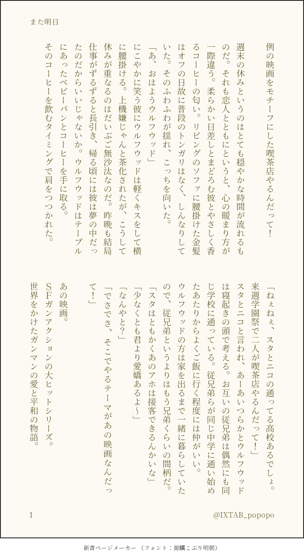 スタと原作は従兄弟にあたります。