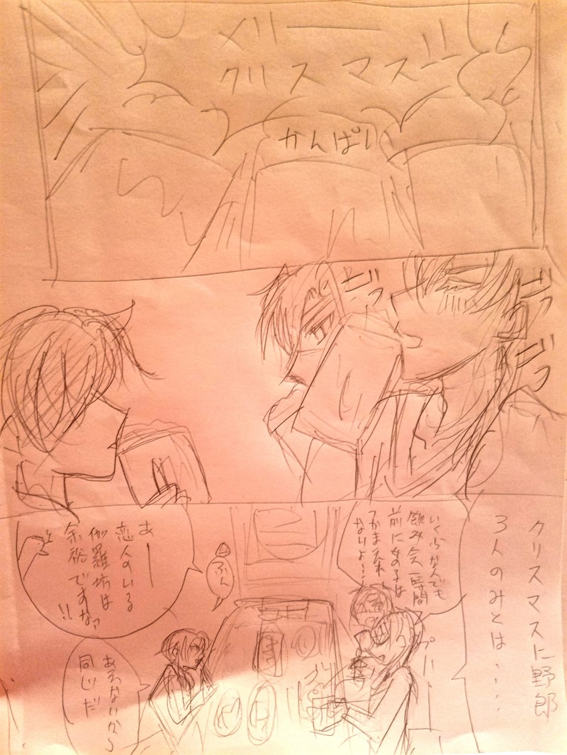 鶴丸さんは「俺と光坊ならクリスマスでも1時間もあれば女の子ゲット出来るぜ!」と開始1時間前にナンパを初めますが見事に失敗したという裏設定です。