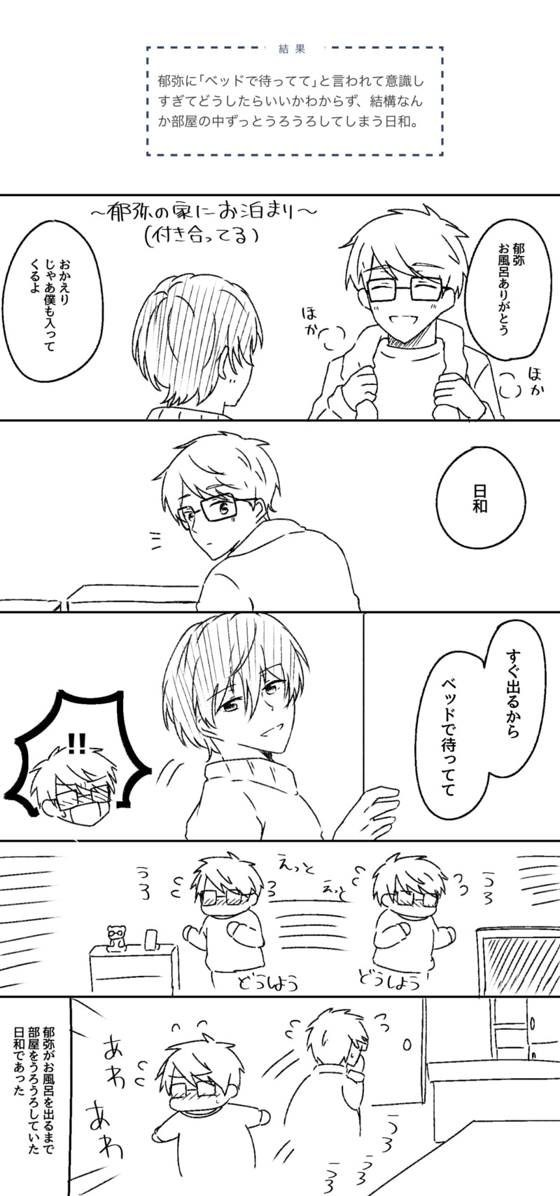 kana_way☆quiet followDOODLEいくぴに「ベッドで待ってて」って言わせたかっただけ ##いくひよ Tap to full screen (size:1200x2560).Repost is prohibited kana_wayMENU12/15 Splash! 21 発行予定のいくひよ本サンプルです。「パンケーキの後のデザートはキミ!」A5 | 本文12p | 200円 | R-18ダイエットを理由にいくひよがエッチする話です。 6 kana_wayMENU10/27 ENTRUST 8 発行予定のアイ光♀本サンプルです。「ノーザンライツの向こう側」A5 | 本文26p | 400円アイメリクとヒカセン♀(自機)が、クルザスのオーロラを見に行く話です。(ヒカセン♀は自機アウラ)時系列的には5.4以降想定ですが、特にネタバレはないです。よろしくお願いします。 7 kana_wayDONE今まで描いたアイ光♀まとめイラスト・漫画・らくがきごちゃまぜです。両片想いだったり付き合ってるのか付き合ってないのか曖昧な感じの二人が多め。 25 kana_wayPAST【WEB再録】「キミがいるから」(いくひよ)【R-18】2022/03/21発行大学卒業後、それぞれ別の拠点(遠距離)で練習しているいくひよが久しぶりに会う話。当時お手に取ってくださった方々ありがとうございました! 18歳以上ですか?↓(yes/no) 29 kana_wayDONEダンマカwebオンリー開催おめでとうございます!上ルートのリーベル+アルム漫画です。(CPなし)クウラさんも割と出ます。 15 kana_wayMENU11/23 Splash! 20 発行予定のいくひよ本サンプルです。「Cocon Aimer」A5 | 本文28p | 400円日和のことを考えると身体からハートが出てくるようになっちゃった郁弥くんの話です。なんだかんだありつつもラブラブないくひよたちです!!霜学水泳部のキャラ(主に寺島)も割と出ます。よろしくおねがいします! 9 recommended works ゆずきDONEダンマカwebオンリー当日公開漫画 24 ロメオDOODLEこれはグリムノーツの白雪姫。女の子ってめっちゃ楽しく描けるね ずっちょDOODLEあけおめな服着てるだけの穹レイ のの。DOODLE女体化 モブスカ(モブ散) おっぱいぼろん meloncholibriDONE noa_yuzuriDONEおかえりとただいま 2 猫のしっぽDOODLE描き始め! アンジェINFO年賀絵2025年あけまして おめでとう ございます旧年中はお世話になりました 本年もよろしくお願い申し上げます CafFeineDONE 8037