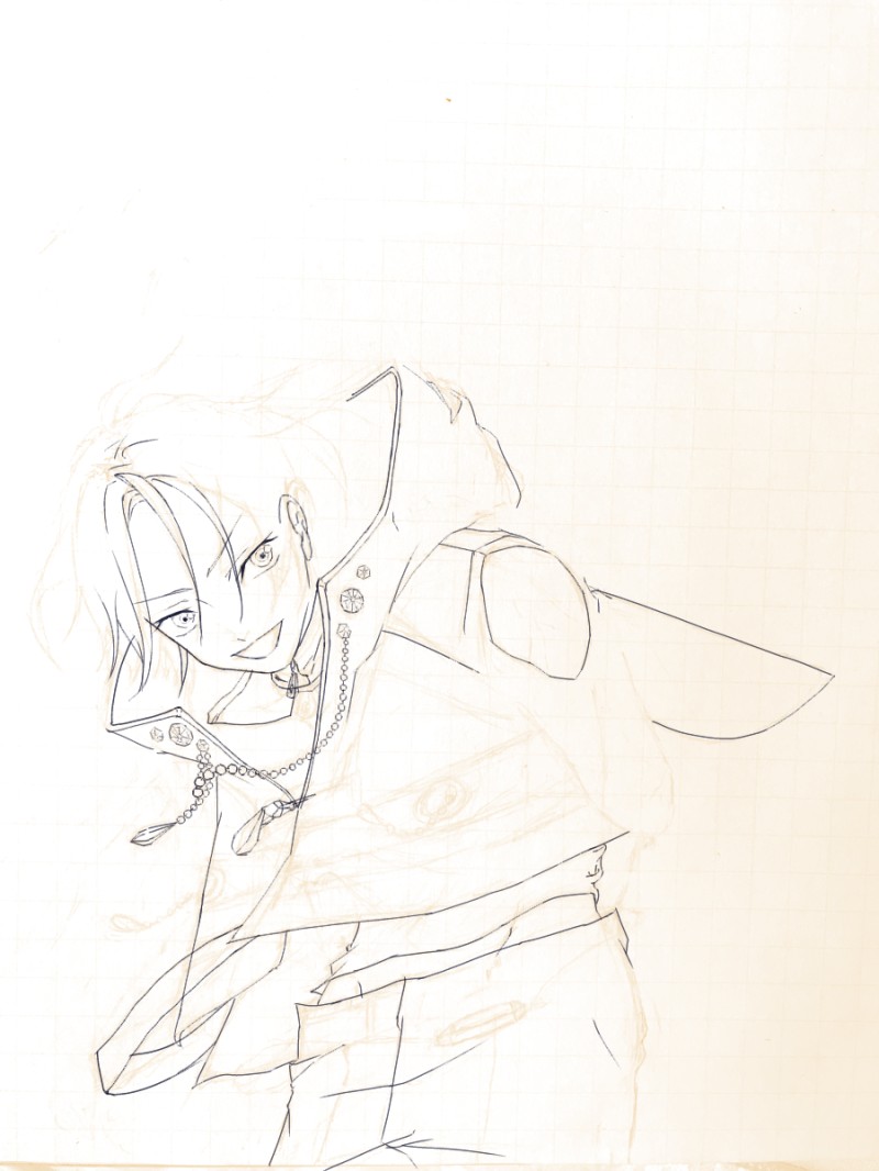 描いたことない角度+躍動感+ワの形の口+首から下+服のシワ+ディテールを面倒くさがらず描く、など苦手なものましましにした挑戦作です。
