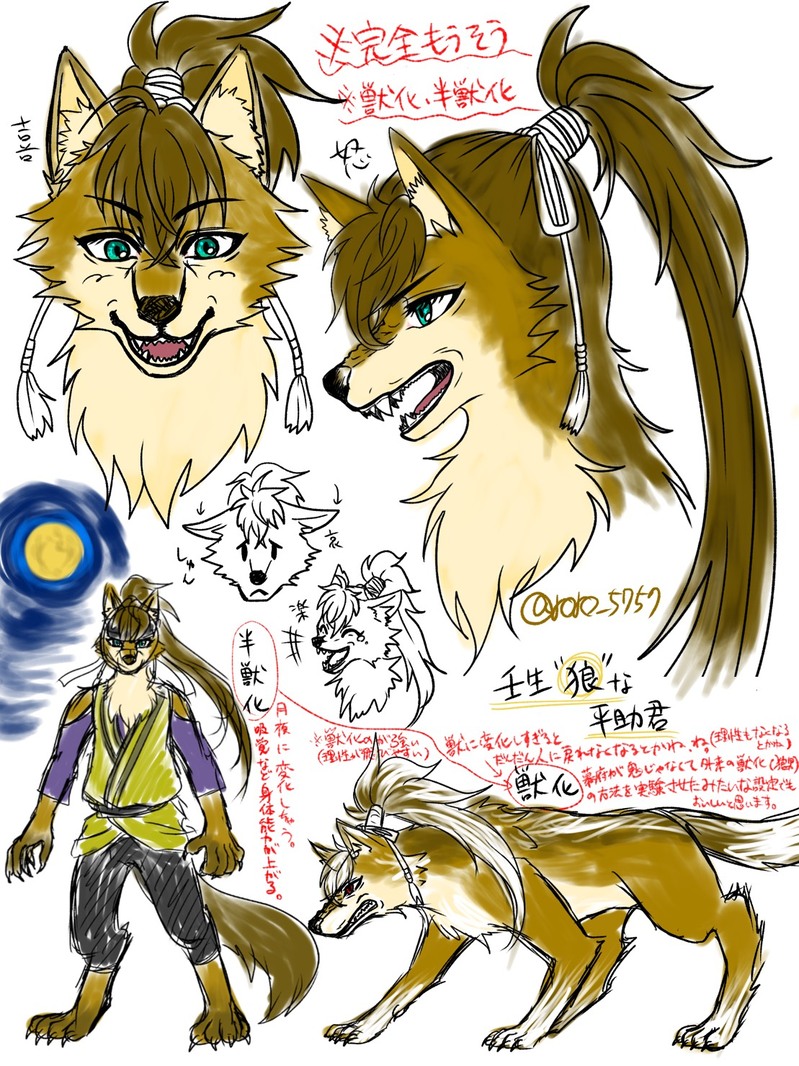 昨日描いた妄想を私の中で深めました。(壬生「狼」化な平助君)※獣化、半獣化など妄想設定