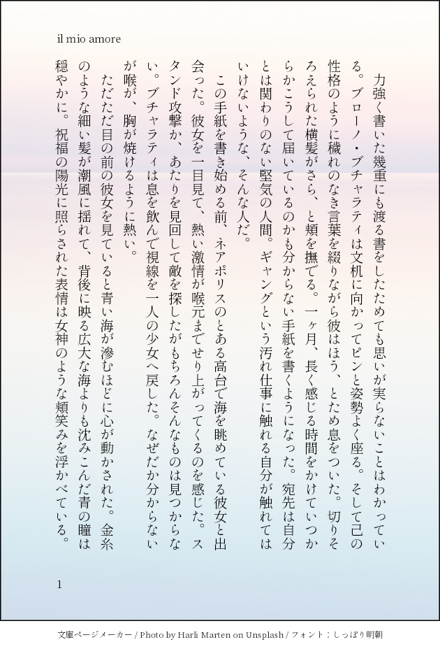 やすけ@さくらうさぎ御殿☆quiet followDONEジョジョ五部 ブチャラティ 手紙シリーズの一番最初 #ジョジョ jojo. #ブチャラティ bucharati #夢小説 dreamNovel #5部 5Copies show all(+5 images) Tap to full screen (size:630x928).Repost is prohibited Let's send reactions! freqpopularsnackothersPayment processing Replies from the creator Follow creator you care about!☆quiet follow やすけ@さくらうさぎ御殿DOODLEペルソナ3 真ハムデフォの「琴音」に着目してうまれたはなし。 9 やすけ@さくらうさぎ御殿DOODLEペルソナ3 真ハム 天田くんに嫉妬する真田先輩 6 やすけ@さくらうさぎ御殿DOODLEペルソナ3 真ハム書きたかったです。 8 やすけ@さくらうさぎ御殿SPOILER今書いている真田先輩の中編?です。こんな感じのお話を書いてます。完結させたいですって決意表明。私は普段、恋に踊らされる真田先輩ばっかり書いてます。本来、真田先輩はそういう人じゃないって思う方もいると思いますが、恋愛を抜きにした描写は原作が十分にやってます。なので私があえて書く必要は無い、私は恋に翻弄される真田先輩を膨らませて書きます。私が見たいんです。 やすけ@さくらうさぎ御殿DOODLEペルソナ3 真ハム最後のイラストはトレスです。普段イラストは描かないです。描けないので。でもこのお話のシーンを描いたからですね…… 9 やすけ@さくらうさぎ御殿DOODLEペルソナ3 真ハム 七夕マッチ 真田先輩視点 4 related works フリンDOODLE❄❄❄ギアッチョ❄❄❄ 🩸DOODLE髪型はこっちが好き目はこっちが好きってしてると1ミリも似なくなった・・・・二枚目は余計なもの取り除いたやつです 2 きららDONEお相手:❄️お題「照れ隠し」#jo夢版ワンドロワンライ私の中で❄️はピュアボーイの代名詞!ちょっとあまのじゃくなお話。 komehazesukiPROGRESSプロシュートの兄貴好きなのでアイコン変えるために作成中渋めの色合いにしてみる作業BGMは中森明菜ちゃんのSAND BEIGE砂漠 もぐもぐ/ぱんDOODLEDIOさま肩幅が狭くなっちゃった 鈴原あかみDONE フリンMAIKING♪︎細かくて細かくて(手が)震える~完成思うほどツラく感じて~ *mirin*DOODLEぼくのうちにはぼくとおかあさんとおとうさんとそれからめろーねがいます カリンパ㊷DONE「花ありがとな お前さんはこっち来んじゃねーぞ」アニオリのジョルノによる花畑でさらに泣きました。ありがとうアニメスタッフ🌻 recommended works しきりーぬDOODLEきすみゅう #undertale konai1229DOODLE #UNDERTALE きのはDOODLEネキ一度は描いてみたかった мïтμŠёDONEアンテ四周年おめでとうございます!!!!!!のキャラちゃん namako_oxo24TRAININGポイピク公式企画素材をかりて(年齢操作)お化粧に目覚めてきたフリちゃんと何故かフリちゃんにリップを塗ることになり煩悩をころしているズ色塗りとか影むずいね😇 夜長子ーよなこーDOODLEなんで赤面してるのかはご想像にお任せします(てか消しカスめっちゃうつってる 月光🌛DOODLEクソ雑魚パズルおじさん愛してるよ Kn_090PASTUNDERTALE詰め詰め 8 かぼちゃっぽーDONEメリークリスマス