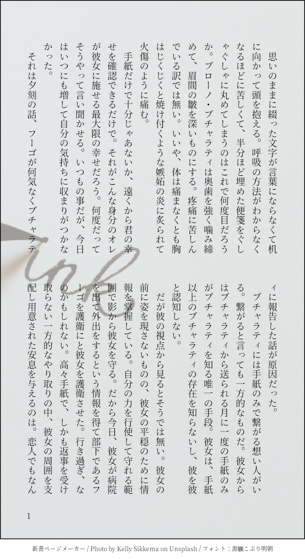 やすけ@さくらうさぎ御殿☆quiet followDONEジョジョ5部 ブチャラティ夢手紙のやつ #ジョジョ jojo. #夢小説 dreamNovel #ブチャラティ bucharati show all(+2 images) Tap to full screen (size:618x1132).Repost is prohibited Let's send reactions! freqpopularsnackothersPayment processing Replies from the creator Follow creator you care about!☆quiet follow やすけ@さくらうさぎ御殿DOODLEペルソナ3 真ハムデフォの「琴音」に着目してうまれたはなし。 9 やすけ@さくらうさぎ御殿DOODLEペルソナ3 真ハム 天田くんに嫉妬する真田先輩 6 やすけ@さくらうさぎ御殿DOODLEペルソナ3 真ハム書きたかったです。 8 やすけ@さくらうさぎ御殿SPOILER今書いている真田先輩の中編?です。こんな感じのお話を書いてます。完結させたいですって決意表明。私は普段、恋に踊らされる真田先輩ばっかり書いてます。本来、真田先輩はそういう人じゃないって思う方もいると思いますが、恋愛を抜きにした描写は原作が十分にやってます。なので私があえて書く必要は無い、私は恋に翻弄される真田先輩を膨らませて書きます。私が見たいんです。 やすけ@さくらうさぎ御殿DOODLEペルソナ3 真ハム最後のイラストはトレスです。普段イラストは描かないです。描けないので。でもこのお話のシーンを描いたからですね…… 9 やすけ@さくらうさぎ御殿DOODLEペルソナ3 真ハム 七夕マッチ 真田先輩視点 4 related works お肉屋さんDOODLEブチャ 2 てんは天ぷらが好きDOODLEブチャラティ 大魔王たかしくんDONE #ブチャラティ ジョーDOODLEブチャラティ はちDONE自分用のロック画面ジョジョ5部のブチャラティをイメージ。大好きです。 3 ざのまねPROGRESSブチャラティと触手(ジョルノスタンド)を作業中 / 2. とりあえず雰囲気だけ見て次のページをやる〜。漫画っていうよりピンナップアートやなここは。。1.相変わらずジョルノ(ハルノ)とはほぼ何もできない縛りがアカウント上で続いているため、苦労しているブチャラティさんだ… 3 🍣すがみちる🍣DOODLE夏に描いた落書き集です(ジョジョのみ)#ジョジョ #ブチャラティ #5部 7 fugufugufuguDOODLE血気盛んなブチャラティと諌めきれないアバッキオ です 2 menkolaboDOODLEジョジョ5部のブチャラティ recommended works おはなちゃんPROGRESS #undertale #途中 momo_sk0DOODLE #undertale つなマヨPROGRESSTwitterで完成させた絵のラフ絵です。人生初手ぶれ補正10(今まで何を思ってか4)を使用して描きましたので、爆速でラフが終わりました。手ぶれ補正、線画本番用というより、納得出来るラフを爆速で描くためのもののような気も…なんで使ってなかったのかは、謎です😅 2 K_hisahito__PASTFamily 🌾耕せ🌾PROGRESS 🍡🍵DOODLEパーカーとどいたー!!着てみた感じとかはまた時間あるときにたっぷり描く しいだ 倉庫DOODLEメタトンちゃんへ視聴率分のギャラください ねDOODLE2020/02/02 個性が強すぎる店員さん達。 しいだ 倉庫DOODLE息抜き