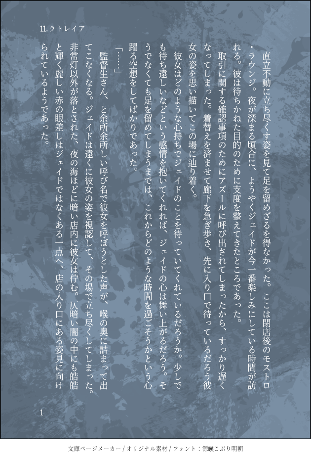 やすけ@さくらうさぎ御殿☆quiet followDONEツイステ ジェイド夢 #夢小説 dreamNovel #twst #ジェイド jade show all(+3 images) Tap to full screen (size:630x928).Repost is prohibited Let's send reactions! freqpopularsnackothersPayment processing Replies from the creator Follow creator you care about!☆quiet follow やすけ@さくらうさぎ御殿DOODLEペルソナ3 真ハムデフォの「琴音」に着目してうまれたはなし。 9 やすけ@さくらうさぎ御殿DOODLEペルソナ3 真ハム 天田くんに嫉妬する真田先輩 6 やすけ@さくらうさぎ御殿DOODLEペルソナ3 真ハム書きたかったです。 8 やすけ@さくらうさぎ御殿SPOILER今書いている真田先輩の中編?です。こんな感じのお話を書いてます。完結させたいですって決意表明。私は普段、恋に踊らされる真田先輩ばっかり書いてます。本来、真田先輩はそういう人じゃないって思う方もいると思いますが、恋愛を抜きにした描写は原作が十分にやってます。なので私があえて書く必要は無い、私は恋に翻弄される真田先輩を膨らませて書きます。私が見たいんです。 やすけ@さくらうさぎ御殿DOODLEペルソナ3 真ハム最後のイラストはトレスです。普段イラストは描かないです。描けないので。でもこのお話のシーンを描いたからですね…… 9 やすけ@さくらうさぎ御殿DOODLEペルソナ3 真ハム 七夕マッチ 真田先輩視点 4 related works きららDONEお相手:❄️お題「照れ隠し」#jo夢版ワンドロワンライ私の中で❄️はピュアボーイの代名詞!ちょっとあまのじゃくなお話。 LAL_ConspiratorPAST 6673 秋月蓮華DONEログとしてあげておくきんぐおじゃ夢小説模造幼少期ヒロインとハスティー兄弟 954 LAL_ConspiratorPASTOriginal character and a reader 6473 七海こいとDONE⚠️夢小説⚠️140字文 3 秋月蓮華DONEログで上げておく模造幼少期にさらにカグさんをたしてみたはなし。いつもの夢主 825 urushiuruTRAININGお久しぶりに書いたキバナ夢小説。リクエスト頂いた、キバナと幼馴染の女の子の話。最後はどことなくヤンデレ風味……。 2232 秋月蓮華DONEきんぐおじゃログ。昔話2ギラとの話 2165 七海こいとDONE⚠️夢小説⚠️140字文 4