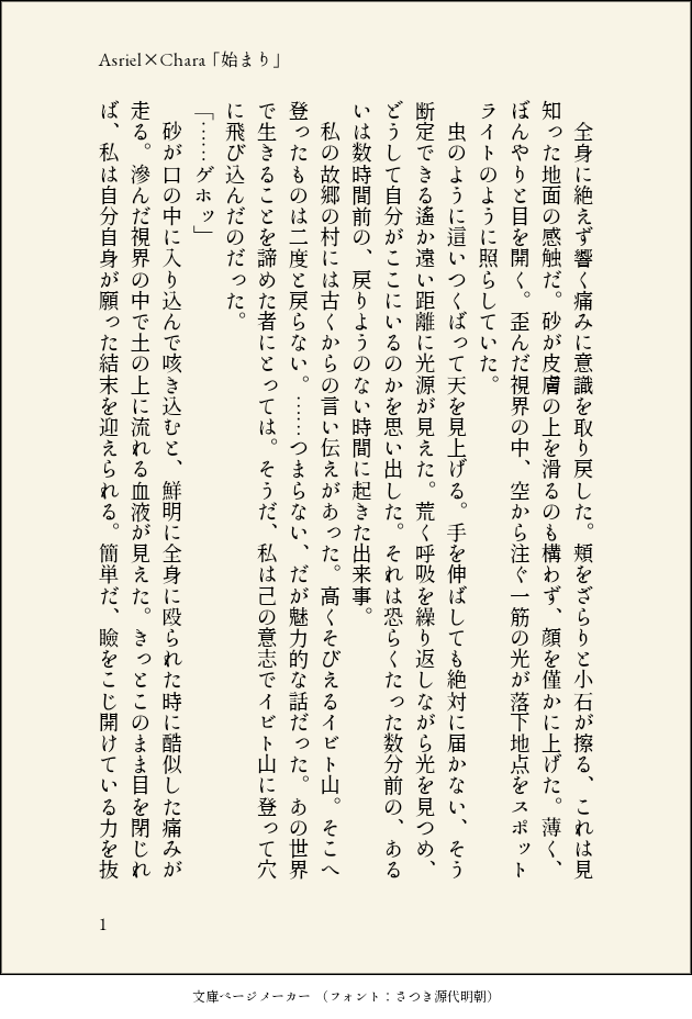 やすけ@さくらうさぎ御殿☆quiet followDOODLEUNDERTALE Asriel×Chara初めて彼らが出会った時のおはなし。このゲームやってて思ったのがモンスターは見た目で判断はしないんですよね。ニンゲンか否かでは判断するかもしれないけど。 #アズキャラ asphaltCharacter #UNDERTALE UNDERTALE #アズキャ #undertale show all(+5 images) Tap to full screen (size:630x928).Repost is prohibited Let's send reactions! freqpopularsnackothersPayment processing Replies from the creator Follow creator you care about!☆quiet follow やすけ@さくらうさぎ御殿DOODLEペルソナ3 真ハムデフォの「琴音」に着目してうまれたはなし。 9 やすけ@さくらうさぎ御殿DOODLEペルソナ3 真ハム 天田くんに嫉妬する真田先輩 6 やすけ@さくらうさぎ御殿DOODLEペルソナ3 真ハム書きたかったです。 8 やすけ@さくらうさぎ御殿SPOILER今書いている真田先輩の中編?です。こんな感じのお話を書いてます。完結させたいですって決意表明。私は普段、恋に踊らされる真田先輩ばっかり書いてます。本来、真田先輩はそういう人じゃないって思う方もいると思いますが、恋愛を抜きにした描写は原作が十分にやってます。なので私があえて書く必要は無い、私は恋に翻弄される真田先輩を膨らませて書きます。私が見たいんです。 やすけ@さくらうさぎ御殿DOODLEペルソナ3 真ハム最後のイラストはトレスです。普段イラストは描かないです。描けないので。でもこのお話のシーンを描いたからですね…… 9 やすけ@さくらうさぎ御殿DOODLEペルソナ3 真ハム 七夕マッチ 真田先輩視点 4 related works やすけ@さくらうさぎ御殿DOODLEUNDERTALE Asriel×Charaアズリエルがキャラに対する恋心を抱く話。今まで書いたやつで1番難産。もはや日本語すらままならない感じでした。恋愛はむずかしい 4 永海まみPROGRESS好きなジャンルの推しCP達!背景は全く考えない!(笑) やすけ@さくらうさぎ御殿DOODLEUNDERTALE Asriel×CharaPルートアズリエルにはキャラしかいない。 2 やすけ@さくらうさぎ御殿DOODLEUNDERTALE Asriel×Chara「体温」Charaがアズリエルに救われてるのはぜったいそう 4 永海まみCAN’T MAKE久々・⌒ ヾ(*´ω`) ポイアズキャラ描こうと思ってます! やすけ@さくらうさぎ御殿DOODLEUNDERTALE Asriel×Chara初めて彼らが出会った時のおはなし。このゲームやってて思ったのがモンスターは見た目で判断はしないんですよね。ニンゲンか否かでは判断するかもしれないけど。 6 永海まみBLANKこんなアズキャラ描きてぇなぁ〜と! やすけ@さくらうさぎ御殿DOODLEUNDERTALE Asriel×Charaどれだけ強いケツイでキャラは毒を飲んだのかなって。 3 やすけ@さくらうさぎ御殿DOODLEUNDERTALE Asriel×CharaCharaがAsrielに対して恋心を抱くだけ。(原作時より成長してる設定です) 4
