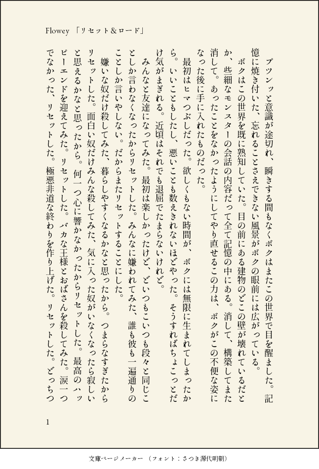 やすけ@さくらうさぎ御殿☆quiet followDOODLEUNDERTALE Flowey「リセット&ロード」フラウィ側の感情も考えるとエモい。初見はガチめに「クソ花!!」って思ってました。 #undertale #フラウィ freewheel #Flowey show all(+2 images) Tap to full screen (size:630x928).Repost is prohibited Let's send reactions! freqpopularsnackothersPayment processing Replies from the creator Follow creator you care about!☆quiet follow やすけ@さくらうさぎ御殿DOODLEペルソナ3 真ハムデフォの「琴音」に着目してうまれたはなし。 9 やすけ@さくらうさぎ御殿DOODLEペルソナ3 真ハム 天田くんに嫉妬する真田先輩 6 やすけ@さくらうさぎ御殿DOODLEペルソナ3 真ハム書きたかったです。 8 やすけ@さくらうさぎ御殿SPOILER今書いている真田先輩の中編?です。こんな感じのお話を書いてます。完結させたいですって決意表明。私は普段、恋に踊らされる真田先輩ばっかり書いてます。本来、真田先輩はそういう人じゃないって思う方もいると思いますが、恋愛を抜きにした描写は原作が十分にやってます。なので私があえて書く必要は無い、私は恋に翻弄される真田先輩を膨らませて書きます。私が見たいんです。 やすけ@さくらうさぎ御殿DOODLEペルソナ3 真ハム最後のイラストはトレスです。普段イラストは描かないです。描けないので。でもこのお話のシーンを描いたからですね…… 9 やすけ@さくらうさぎ御殿DOODLEペルソナ3 真ハム 七夕マッチ 真田先輩視点 4 related works 月光🌛MOURNINGお花まとめ 3 せろえーだぞっ(旧)CAN’T MAKE手がうまく描けれないわいです。ほとんどアンテでちびキャラちなみにアンテで一番好きなのはフラウィーあと一枚目のキャラのはMARETUさんのダーリンからダーリンはMARETUさんのなかで一番好きカラオケで歌いたいなー(音痴) 4 たたりめNDOODLE雑コラ やすけ@さくらうさぎ御殿DOODLEUNDERTALE Flowey「リセット&ロード」フラウィ側の感情も考えるとエモい。初見はガチめに「クソ花!!」って思ってました。 3 たたりめNDOODLE 4 мïтμŠёDONEフリちゃんとフラウィーちゃん やすけ@さくらうさぎ御殿DOODLEUNDERTALE Flowey絶対Nルートのアズゴアのセリフ、フラウィの地雷だったと思うの 2 cmiPASTUNDERTALEまとめ 22 ずきんDOODLEフラウィー落書き recommended works Ms1tAroDOODLE #2B #UNDERTALE #スーモ 4 kongsoupDOODLE #UNDERTALE つなマヨPROGRESSTwitterで完成させた絵のラフ絵です。人生初手ぶれ補正10(今まで何を思ってか4)を使用して描きましたので、爆速でラフが終わりました。手ぶれ補正、線画本番用というより、納得出来るラフを爆速で描くためのもののような気も…なんで使ってなかったのかは、謎です😅 2 K_hisahito__PASTsans×Gaster 2 K_hisahito__PASTFamily ヒノマヨシDOODLE「なんで怒ってるんだ?」 ねDOODLE2019/06/14 ママ難しい。ピザの投げ方がフリスビーっぽくないのはミスです。ズなら余裕で回避できそうですが、あえてぶつかったパターンで描いてみました。 しいだ 倉庫DOODLESwitchを実質タダで買ったので、ずっと気になってたアンテをやっていますGでケツイが折れそうですアンダインかわいすぎて推しです!!!!生え際どうなってんの!!!!かわいい!!!!!!!! bD5kuAfumw748yGCAN’T MAKE基本フリスクのイラストまとめ 7