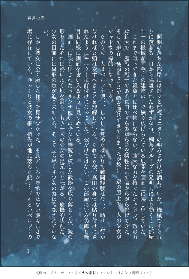やすけ@さくらうさぎ御殿☆quiet followDOODLEペルソナ3 真ハム 「春月の君」ハム子の初陣を画面越しに見た真田明彦の話 #ペルソナ3 persona3 #ハム子 Hamuko #真田明彦 akihikoSanada #真ハム ham show all(+2 images) Tap to full screen (size:630x928).Repost is prohibited Let's send reactions! freqpopularsnackothersPayment processing Replies from the creator Follow creator you care about!☆quiet follow やすけ@さくらうさぎ御殿DOODLEペルソナ3 真ハムデフォの「琴音」に着目してうまれたはなし。 9 やすけ@さくらうさぎ御殿DOODLEペルソナ3 真ハム 天田くんに嫉妬する真田先輩 6 やすけ@さくらうさぎ御殿DOODLEペルソナ3 真ハム書きたかったです。 8 やすけ@さくらうさぎ御殿SPOILER今書いている真田先輩の中編?です。こんな感じのお話を書いてます。完結させたいですって決意表明。私は普段、恋に踊らされる真田先輩ばっかり書いてます。本来、真田先輩はそういう人じゃないって思う方もいると思いますが、恋愛を抜きにした描写は原作が十分にやってます。なので私があえて書く必要は無い、私は恋に翻弄される真田先輩を膨らませて書きます。私が見たいんです。 やすけ@さくらうさぎ御殿DOODLEペルソナ3 真ハム最後のイラストはトレスです。普段イラストは描かないです。描けないので。でもこのお話のシーンを描いたからですね…… 9 やすけ@さくらうさぎ御殿DOODLEペルソナ3 真ハム 七夕マッチ 真田先輩視点 4 related works やすけ@さくらうさぎ御殿DOODLEペルソナ3 真ハム 天田くんに嫉妬する真田先輩 6 やすけ@さくらうさぎ御殿DOODLEペルソナ3 真ハムデフォの「琴音」に着目してうまれたはなし。 9 やすけ@さくらうさぎ御殿DOODLEペルソナ3 真ハム大晦日の選択。綾時くん視点です 7 れいとうえびDOODLE真ハム ホットケーキの日おめでと(おめでと?) やすけ@さくらうさぎ御殿DOODLEペルソナ3 真ハム←綾時「君の所有権」修学旅行一日目のお話ってことで。前日が月曜日なので場合によっては真ハムがお部屋デートしてるんですよね…… 7 やすけ@さくらうさぎ御殿DOODLEペルソナ3 真ハム書きたかったです。 8 やすけ@さくらうさぎ御殿DOODLEペルソナ3 真ハム将来を約束してただろうなって 8 やすけ@さくらうさぎ御殿DOODLEペルソナ3 真ハム9月あまやどりのおはなし 8 やすけ@さくらうさぎ御殿DOODLEペルソナ3 真ハムただただ 3 recommended works あまもDOODLE買ったんですけど久々に世界観に引き込まれました…神ゲーだった………ただ…Gルートやりたくないです………けどやりたいです………どうしよう 0606_nmknPAST過去絵からメイキング画像を掘り出した! 4 BADWOLF893DOODLE 4 粥おこめMAIKINGフリスクはキャラの死体から生まれた説が、解釈の一つとして面白くて好きです。 namako_oxo24DOODLEおふるのチュチュ装備中ラッキースケベありそうだよねっていう絵 くろ/白身MOURNINGサークルで描いたMTT供養 水玉@nonbinobiDONEメイドフリスクテスト掲載用です 月光🌛DOODLE大爆笑するSans 月光🌛MOURNING*こらサンズ、ちゃんと挨拶しなさい。
