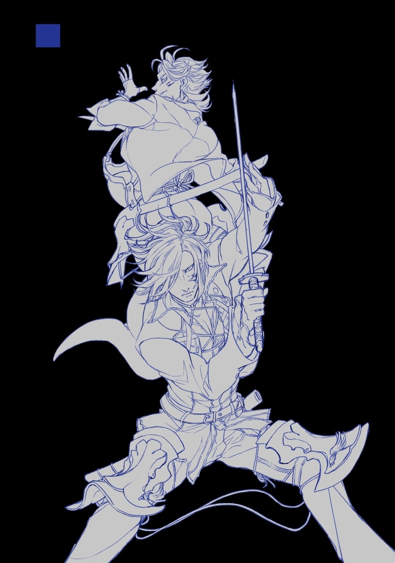 【三池とほんのりソハ典】描きかけ倉庫。線画2枚と新規ラフ2枚。仕上がったものからTwitterに放流します。