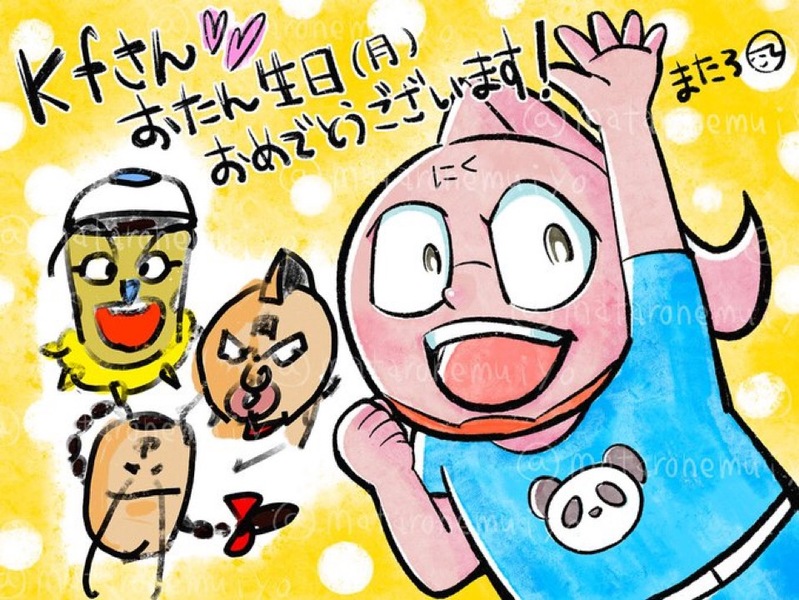 またろさんにまで素敵なミートくんをいただいてしまいましたのでこちらで公開させてください😭左の3人はまたろさんの旦那さま画です…こんな…こんなすごい絵を私が貰っていいなんてことある?!と思いました サクラさんに始まって末吉さん、嘉鳥さん、ゆきおさん、根井さん、そしてまたろさんと誕生月、最後までいい事だらけでした。ありがとうございます…!😭🙇‍♀️