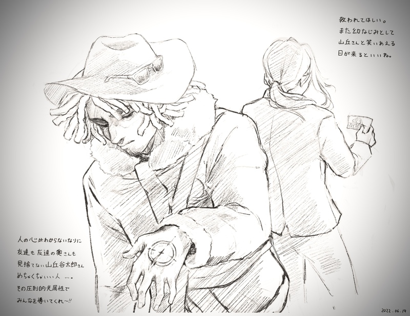 ホットケーキ☆quiet followDOODLE[クトゥルフ神話TRPG]沼男は誰だ?【前編】説得のシーン、FBさんにしては語気が荒めというか捲し立てるような必死さがあって、鐘有を助けるために行方をなんとしてでも知りたい山丘の感情がリアルに表現されてて本気で痺れた。これからどうなっちゃうんだろ…後編が怖いよ… Tap to full screen (size:3300x2550).Repost is prohibited Let's send reactions! freqpopularsnackothersPayment processing Replies from the creator Follow creator you care about!☆quiet follow ホットケーキMAIKING誕生日絵ボツ ホットケーキPAST1年分のお気に入りまとめ 40 ホットケーキDONEeoheoh誕生日記念イラスト2023加工前バージョン ホットケーキDOODLE再掲ドミネーター持たせたけど七男さんはどちらかというと免罪体質っぽそう多角的かつ公平に物事を見ることができる頭脳をシュビラが放っておくはずがない人間に対しての感情が諦めだったから良かったけど、これが博愛だったら槙島さんになるし憎悪だったら御冷ミァハになると思うあとみんなの感想見てるとあのセリフ思い出す「賢すぎて、用意周到すぎて、いつだって確かな心得ていた。たった一冴えたやり方」 ホットケーキDOODLEエフシロ視聴記念「果たしてその体は本物なのか偽物なのか」 ホットケーキPAST七男一体どんな奴なんだ… 3