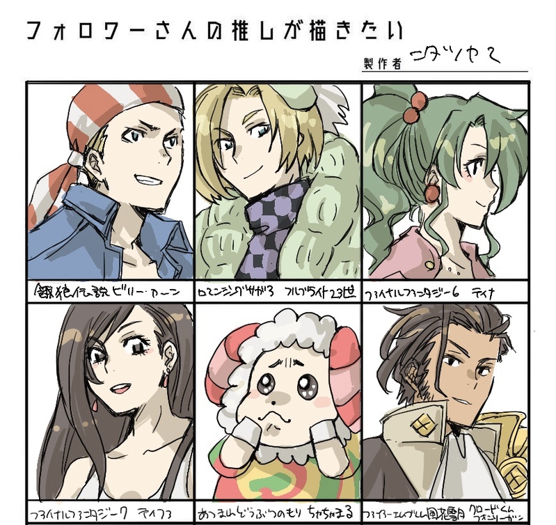 ニタツヤマ☆quiet followMOURNINGジャンルごった煮がすぎるフォロワーさんの推しを描くやつ 公式が本の発売前にやってた好きに使えよみたいなフォーマットにぶちこんだ主人公達と弓兵 DS内のコミュニティ?に描いたやつをサルベージしたもの show all(+6 images) Tap to full screen (size:868x819).Repost is prohibited Let's send reactions! freqpopularsnackothersPayment processing Replies from the creator Follow creator you care about!☆quiet follow ニタツヤマPROGRESSサガフロ2、25周年絵の過程フィリップの髪型と服の色を間違えデジタルで修正しました便利な世の中ですね、、、 7 ニタツヤマPASTクロレス 41 ニタツヤマPAST他学級 53 ニタツヤマPASTお父さん先生騎士団他 38 ニタツヤマPAST金鹿わちゃ 63 ニタツヤマPAST金鹿 60 recommended works ぺけ*ぽけの自由画帳。DOODLEヴァンアーブルさん。2018/10/07UP#サガフロ2 guuko416PASTサガフロ2のギュスターヴいつも小さく描いてしまうので、自分の中では大きめに描くことを意識した絵シグノボールペン、ウィンザー&ニュートン使用 guuko416PASTサガフロ2 ロベルトちょっと少女漫画っぽい顔になってしまってますが、意外と気に入ってますシグノボールペン、ウィンザー&ニュートン使用 guuko416PASTサガフロ2 ナルセス珍しく色鉛筆で着色した絵シグノボールペン、MITSUBISHIの12色色鉛筆使用 guuko416PASTサガフロ レオナルドこちらも珍しく色鉛筆使用シグノボールペン、MITSUBISHIの12色色鉛筆使用 guuko416PASTサガフロ2 ロベルト&ジニーシグノボールペン、ウィンザー&ニュートン使用 h!63(ヒロミ)PAST七英雄中心サガ絵パート2。 7 h!63(ヒロミ)PAST女王様中心サガ絵。描いた順番はバラバラです。 59 h!63(ヒロミ)TIREDいつか(ry)のジニーちゃん。ローアングルむずいですね。