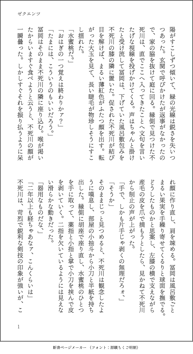 つきこ☆quiet followDONEぎゆさね。余生、死表現あり。ちょっと叙情的になりすぎたけど、自分の好きに偏って詰め込みましたタイトル「ゼクエンツ」 show all(+7 images) Tap to full screen (size:618x1132).Repost is prohibited Let's send reactions! freqpopularsnackothersPayment processing Replies from the creator Follow creator you care about!☆quiet follow つきこDONE◆2025/9/27〜28 夕凪風4 書きおろし②◆「手」余生ぎゆさね。(4,000字程度) 7 つきこDONE◆2025/9/27〜28 夕凪風4 書きおろし④◆「夜も四度目なら」ぎちひろ・ぎちポリWEBアンソロ参加作品テーマ『夜』『朝』 (4,000字程度) 9 つきこDONE◆2025/9/27〜28 夕凪風4 書きおろし③◆「それでも空は」余生ぎゆさね。(900字程度) 2 つきこDONE◆2025/9/27〜28 夕凪風4 書きおろし①◆「声」余生ぎゆさね。(900字程度)R18(ぬるいですが成人向け描写があるので)Pass:18歳以上・高卒済ですか?(yes または no)※noの場合は閲覧不可 2 つきこDONEドルパロぎゆさね、書きたいとこだけ!同じグループ&つきあってるパスワード:18歳以上・高校卒業済ですか?→yes or no 3 つきこDONE #ぎゆさね版ドロライぎゆさね版ドロライ、お題「ネコ/首輪」をお借りしました。つきあってる現パロぎゆさね。※注意※エッチなお衣装が出てきます。苦手な方はお控えください。 6