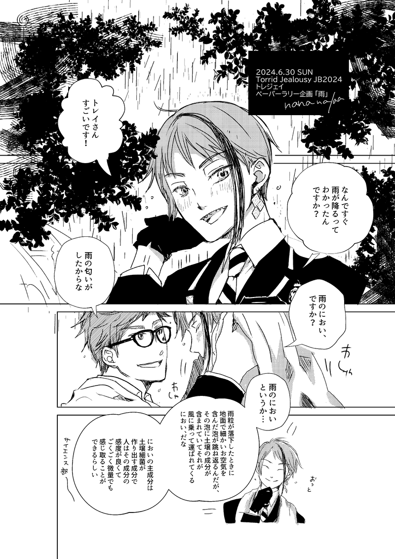 雨の匂いって人間は経験で分かるようになってると思うので、人魚のジェイドはまだ気づけていない、だんだんわかるようになってきて答え合わせをトレイとしてくれ