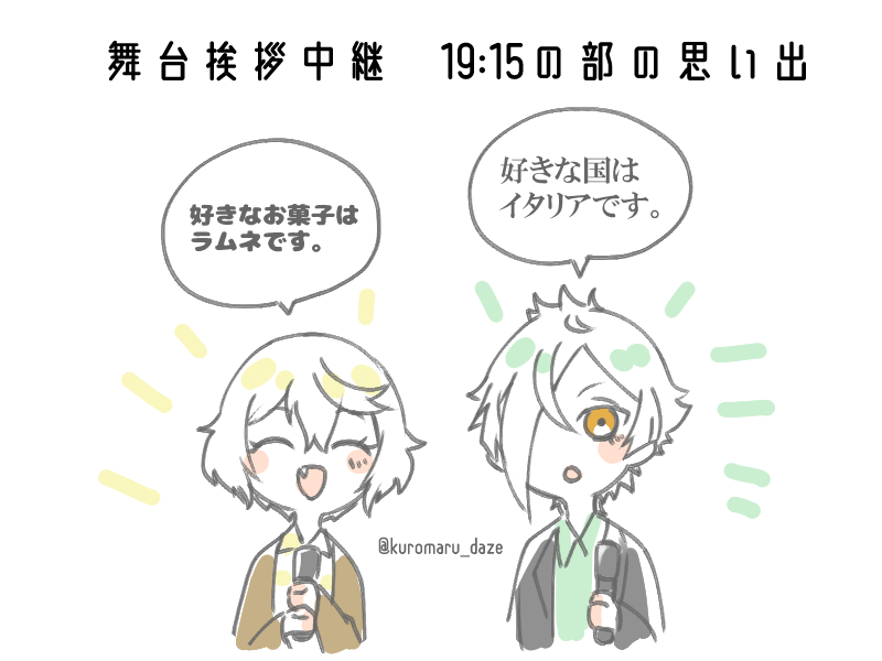 くろまる☆quiet followDOODLE舞台挨拶の思い出 #刀剣乱舞 Touken Ranbu show all(+3 images) Tap to full screen (size:800x600).Repost is prohibited Let's send reactions! freqpopularsnackothersPayment processing Replies from the creator Follow creator you care about!☆quiet follow くろまるSPOILER※くじゅの兄者バクステネタバレあり。とても可愛いものを見ました。ありがとうございます。 くろまるMEMO初めてCoCTRPGをするフォロワーさん向けに作成した説明文です。※ルルブや関連書籍、ネットの情報を参考にしつつ作成。※●がKPをする上でのハウスルール満載です。※これが正解ではないのであしからず。※CoCTRPGが少しでも気になっているフォロワーさんの助けや遊ぶきっかけの一歩になればいいなぁのメモです。 5317 くろまるDONEアイナス様(@gigeiten1217)もち服のファンアートです。※源氏兄弟こもちが擬人化して短刀サイズ※2枚目は作者の趣味で動物耳と尻尾があります。※ファンアート先のアイナス様には事前に掲載許可を頂いております。以上が大丈夫な方はお進みください。 3 くろまるDONE大根どろらい膝髭7月お題『再会』※注意※『血』『怪我』『欠損』表現があります。苦手な人は閲覧注意です。 3 くろまるSPOILERカブ兄者のネタバレあり くろまるSPOILERとう🌸かぶ2025年7月10日11:30の部兄者の髪についた紙吹雪を取ってあげる弟。 related works knomiDOODLE暖冬暖冬言っても寒い。5周年安定が可愛すぎて悶えました。 かつおDOODLE #刀剣乱舞#三日月宗近 屍DOODLEくろだっ ななくさDOODLE色塗ろうと思いつつ、白いままだと悲伝感あってわりと満足した。 けいすけMOURNING洗濯している山兄弟。多分完成しませぬ…_(:З」∠)_ キツキトウDOODLE寒いからぬえもふりたい。 Xx_2aoi1_7PAST加州をクールに描きたかった なし🍐CAN’T MAKE鶴さん書いたやつの全体〜 マヨコPROGRESS初めて極安定を描いている recommended works のわわわわんPASTあにじゃー🦁 2_2_srDOODLE双騎観たので落書き nanase5567DOODLE kichijiro_perryDONE岩膝悪魔化ψ(⃔ ◦`﹀´◦)⃕↝ 2 翠茄(suica)PROGRESS4/28 st衣装よくわからないけどこれでいいかな…重なってるとこは後で消します 3 いしずえDOODLE犬源氏まとめ 10 rossankudasaiSPOILER1部の仇討ちの例の十郎のシーンやばやばのやばすぎて目ん玉かっぴらきましたよね…お、御御足が……さらけださrrr(バグる) つばきさんDOODLE双騎観てきた!とても面白かった!!千秋楽まで無事駆け抜けることが出来ます様に🙏 バルサミコDOODLE幕間に描いた落書きに色付けました 2