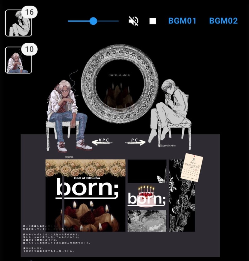 成れ果て⚖️☆quiet followSPOILERCoC6th「born;」 作: cosmos様▼エンド1PL:獅科さん(二科 廻)KPC:成れ果て(佐那木峰人)※ネタバレ注意前から獅科さんの誕生日に回そうとしておりました!タイミングが合わず、何ヶ月も後にセッションを行いましたが、回せて良かったです。大好きなシナリオ。 show all(+8 images) Tap to full screen (size:978x1024).Repost is prohibited Let's send reactions! freqpopularsnackothersPayment processing Replies from the creator Follow creator you care about!☆quiet follow 成れ果て⚖️DOODLEセルフ二次創作ですのよ。222cmのメイドさんですのよ!自陣ラプクォは皆メイド服描いてくれるって思ってるから、ゼノはイロモノメイドで良いかなって🐻✨ 成れ果て⚖️MOURNING■ラプラスの探求者達(HO冥王星)Зино・ Плутонович・Cтрекоза(ゼノ・プルトーノヴィチ・ストリコーザ)▽差分通常バージョン:フルフェイス素顔バージョン別次元バージョン(ロングヘア)エネミーバージョン■オマケCharon(カロン)Nix(ニクス)▽差分通常バージョンエネミーバージョン 46 成れ果て⚖️SPOILERCoC6th「狂気山脈」 作:まだら牛様▼全員生還HO1:日谷さん(Roque Arturo)HO2:獅科さん(Edoardo Angelini)HO3:あたりさん(Vespasiano DellAcqua)HO4:成れ果て(David Jesús Nagumo Marteno)KP:成れ果て※ネタバレ注意KPCでの参加まで認めていただき、ありがとうございました! 40 成れ果て⚖️SPOILERCoC6th「シュガーシュガーメロウダウン」 作:ヤドカリ堂様▼END C:両生還HO狼:成れ果て(lucánido)HO少女:日谷さん(Camila)KP:獅科さん※ネタバレ注意シナリオがお披露目されましたら、パスなしにします!獅科さん作シナリオのテストプレイに参加いたしました🙏 26 成れ果て⚖️SPOILERCoC6th 「__、白白と」作:鮎煮様▼END1:両生還PL:獅科さん(軽帆 凪)KPC:成れ果て(蠍貝 潤一)※ネタバレ注意雰囲気が良さそうで、獅科さんにオススメしたところ、リクエストいただきました! 12 成れ果て⚖️SPOILERCoC6th「くらしリサイタル」作: OXY US様▼両生還KPC:獅科さん(二科 廻)PL:成れ果て(佐那木峰人)※ネタバレ注意 今回、別日に回ったシナリオ「born;」のネタバレも含みます。獅科さんの回せるシナリオのなかで、リクエストしました🙏始まる前「雰囲気すごく良さ気で今の季節にぴったり!たくさんお話して、イチャイチャしようね!」終わった後「ごめん…ごめん…」 18