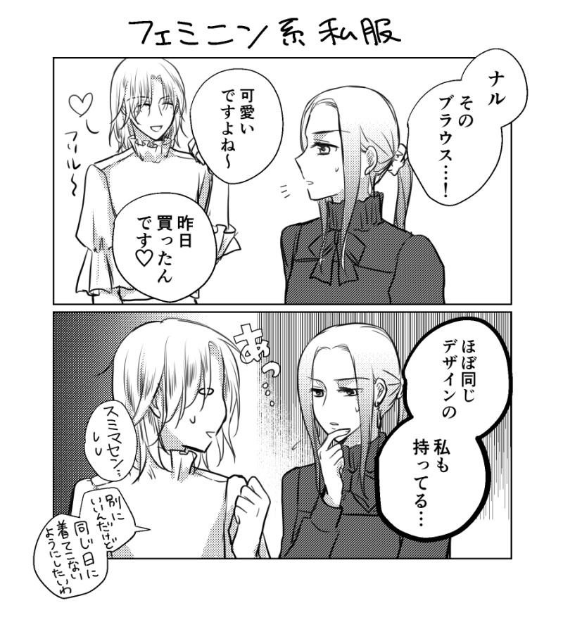 kaiko☆quiet followDONE鳴海先生とセリーナ先生2人ともレースとかよく着てるイメージ #学園アリス schoolAlice Tap to full screen (size:908x1004).Repost is prohibited Let's send reactions! freqpopularsnackothersPayment processing Replies from the creator Follow creator you care about!☆quiet follow kaikoDONE鳴岬鳴前提の鳴岬R18※オ〇ホプレイ※↑で断面図あり岬先生お誕生日おめでとうございました…遅刻の上に内容が内容という…でもおめでとうございます!!!ひっさびさにガッツリとRを描いた気がします!! 11 kaikoDONE鳴岬鳴これは当日分!鳴海先生お誕生日おめでとう!!だいぶ前からカレンダーも確認せずに「当日は平日だし会えないね」の方向でネタを考えていたのですが、今年は土曜だったのでおうちデートしてもらいました 2 kaikoDONE鳴岬鳴と岬先生&蜜柑ちゃん5月以降の話お誕生日まで毎日UP(したかった)の昨日の分です!間に合わなかった…高等部蜜柑ちゃんが岬先生とどんなテンションで話すかわからない…!! 4 kaikoDONE鳴海先生お誕生日おめでとうございます!! kaikoDONE冬コート鳴海先生を以前描いたので今回は夏の鳴海先生でこのシリーズ岬先生も描きたいんですが中々服のバリエーションが思いつかない…!! kaikoDOODLE鳴海先生と! 5 related works kaikoDONE鳴海先生漫画でもレースとかの凝った服着せようかなーと思うこともあるけどその作業が何コマも続くことを考えるといつも簡単なブラウスとかにしてしまう… kaikoDONEこれは蝙蝠面の鳴海先生 kaikoDONE鳴海先生と岬先生で夏祭り(の見回り)この後下駄できてた鳴海先生はじんじんに怒られる(いざというときに走れない服装なので) kaikoMEMOLINE漫画よりモブ女子が柚香先輩を好き勝手ウワサしてるので注意アイツも振られたりするんだな~ちょっとざまーみろと思っている岬君まさか10年後も鳴海くんといっしょにいるはめになるとは思いもよらない平和な岬君…。 2 kaikoDONE岬先生の似合わないコスプレを見た鳴海先生の反応①普通に褒めてフォローする②笑ってからかう③その場では①の対応をとるも後日飲み会の席で写真をとりだして酒の肴にする kaikoDONE鳴海先生とサクランボ!自動採色をベースに色塗り。 kaikoDONE鳴海先生とセリーナ先生2人ともレースとかよく着てるイメージ kaikoMEMO鳴海先生の下の名前のアレ蜜柑ちゃんが迷宮棟から戻ってきたあたり岬先生は鳴海先生がいじられてることを笑っているのではなく、初等部時代に名前でからかってきた相手を返り討ちにしまくってた杏樹くんを知ってるので、生徒たち相手にちゃんとスルーしてる鳴海先生がちょっと面白いんだと思います… 2 kaikoDOODLEそろそろLine漫画の展開がしんどいとこに入ってくので現実逃避にユッキーとナル柱の企画ネタに天国から参加してるユッキーが普通に現鳴海先生を「杏樹」呼びなの好き recommended works Nayuha🌷PAST学園アリスアニメ2期やらないかな…!※1~3枚目はトレスしてます#学園アリス / #佐倉蜜柑 #安積柚香 #ペンギー 5 RottenSeaCAN’T MAKEお前髪型どうなっとんねん選手権堂々の第1位あと設定 本当に しんどい 無理余談ですがコイツを描いたらライアがものすごく描きやすくなりました 何故 髪がツンツンしてるから? kaikoDONE鳴海先生と岬先生で夏祭り(の見回り)この後下駄できてた鳴海先生はじんじんに怒られる(いざというときに走れない服装なので) kaikoDONE岬先生の似合わないコスプレを見た鳴海先生の反応①普通に褒めてフォローする②笑ってからかう③その場では①の対応をとるも後日飲み会の席で写真をとりだして酒の肴にする kaikoMEMO鳴海先生の下の名前のアレ蜜柑ちゃんが迷宮棟から戻ってきたあたり岬先生は鳴海先生がいじられてることを笑っているのではなく、初等部時代に名前でからかってきた相手を返り討ちにしまくってた杏樹くんを知ってるので、生徒たち相手にちゃんとスルーしてる鳴海先生がちょっと面白いんだと思います… 2 kaikoDOODLEこれはアリスストーンをナスの形に加工してることで殿内君の好感度があがる岬先生ナスのお酒作るくらいだし、岬先生ナス好きなのかなー、と kaikoDOODLEライン漫画更新話より杏樹くん志貴さんは初接触だったのでは今でこそ保護者代理争い仲間?の音校理事長と校長ですが、当時19才と14才と思うとなかなか味わい深い… kaikoMEMOLINE漫画よりモブ女子が柚香先輩を好き勝手ウワサしてるので注意アイツも振られたりするんだな~ちょっとざまーみろと思っている岬君まさか10年後も鳴海くんといっしょにいるはめになるとは思いもよらない平和な岬君…。 2 kaikoDONE14巻体育祭ネタ私はずっとナチュラルに触手…と思ってましたが見返したらツタでした