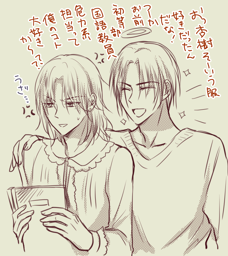 kaiko☆quiet followDOODLEそろそろLine漫画の展開がしんどいとこに入ってくので現実逃避にユッキーとナル柱の企画ネタに天国から参加してるユッキーが普通に現鳴海先生を「杏樹」呼びなの好き #学園アリス schoolAlice Tap to full screen (size:750x842).Repost is prohibited Let's send reactions! freqpopularsnackothersPayment processing Replies from the creator Follow creator you care about!☆quiet follow kaikoDONE鳴岬鳴前提の鳴岬R18※オ〇ホプレイ※↑で断面図あり岬先生お誕生日おめでとうございました…遅刻の上に内容が内容という…でもおめでとうございます!!!ひっさびさにガッツリとRを描いた気がします!! 11 kaikoDONE鳴岬鳴これは当日分!鳴海先生お誕生日おめでとう!!だいぶ前からカレンダーも確認せずに「当日は平日だし会えないね」の方向でネタを考えていたのですが、今年は土曜だったのでおうちデートしてもらいました 2 kaikoDONE鳴岬鳴と岬先生&蜜柑ちゃん5月以降の話お誕生日まで毎日UP(したかった)の昨日の分です!間に合わなかった…高等部蜜柑ちゃんが岬先生とどんなテンションで話すかわからない…!! 4 kaikoDONE鳴海先生お誕生日おめでとうございます!! kaikoDONE冬コート鳴海先生を以前描いたので今回は夏の鳴海先生でこのシリーズ岬先生も描きたいんですが中々服のバリエーションが思いつかない…!! kaikoDOODLE鳴海先生と! 5 related works kaikoDONE鳴海先生とセリーナ先生2人ともレースとかよく着てるイメージ kaikoDOODLEそろそろLine漫画の展開がしんどいとこに入ってくので現実逃避にユッキーとナル柱の企画ネタに天国から参加してるユッキーが普通に現鳴海先生を「杏樹」呼びなの好き kaikoMEMO鳴海先生の下の名前のアレ蜜柑ちゃんが迷宮棟から戻ってきたあたり岬先生は鳴海先生がいじられてることを笑っているのではなく、初等部時代に名前でからかってきた相手を返り討ちにしまくってた杏樹くんを知ってるので、生徒たち相手にちゃんとスルーしてる鳴海先生がちょっと面白いんだと思います… 2 kaikoDONE鳴海先生と岬先生で夏祭り(の見回り)この後下駄できてた鳴海先生はじんじんに怒られる(いざというときに走れない服装なので) kaikoMEMOLINE漫画よりモブ女子が柚香先輩を好き勝手ウワサしてるので注意アイツも振られたりするんだな~ちょっとざまーみろと思っている岬君まさか10年後も鳴海くんといっしょにいるはめになるとは思いもよらない平和な岬君…。 2 kaikoDONE鳴海先生漫画でもレースとかの凝った服着せようかなーと思うこともあるけどその作業が何コマも続くことを考えるといつも簡単なブラウスとかにしてしまう… kaikoDONE岬先生の似合わないコスプレを見た鳴海先生の反応①普通に褒めてフォローする②笑ってからかう③その場では①の対応をとるも後日飲み会の席で写真をとりだして酒の肴にする kaikoDONEこれは蝙蝠面の鳴海先生 kaikoDONE鳴海先生とサクランボ!自動採色をベースに色塗り。 recommended works Nayuha🌷PAST学園アリスアニメ2期やらないかな…!※1~3枚目はトレスしてます#学園アリス / #佐倉蜜柑 #安積柚香 #ペンギー 5 RottenSeaCAN’T MAKEお前髪型どうなっとんねん選手権堂々の第1位あと設定 本当に しんどい 無理余談ですがコイツを描いたらライアがものすごく描きやすくなりました 何故 髪がツンツンしてるから? kaikoDONEこれは蝙蝠面の鳴海先生 kaikoDONE鳴海先生漫画でもレースとかの凝った服着せようかなーと思うこともあるけどその作業が何コマも続くことを考えるといつも簡単なブラウスとかにしてしまう… kaikoDONE岬先生の似合わないコスプレを見た鳴海先生の反応①普通に褒めてフォローする②笑ってからかう③その場では①の対応をとるも後日飲み会の席で写真をとりだして酒の肴にする kaikoMEMO鳴海先生の下の名前のアレ蜜柑ちゃんが迷宮棟から戻ってきたあたり岬先生は鳴海先生がいじられてることを笑っているのではなく、初等部時代に名前でからかってきた相手を返り討ちにしまくってた杏樹くんを知ってるので、生徒たち相手にちゃんとスルーしてる鳴海先生がちょっと面白いんだと思います… 2 kaikoDONELINE漫画がちょうど杏樹くん暴走回だったので… kaikoDOODLEライン漫画更新話より杏樹くん志貴さんは初接触だったのでは今でこそ保護者代理争い仲間?の音校理事長と校長ですが、当時19才と14才と思うとなかなか味わい深い… kaikoMEMOLINE漫画よりモブ女子が柚香先輩を好き勝手ウワサしてるので注意アイツも振られたりするんだな~ちょっとざまーみろと思っている岬君まさか10年後も鳴海くんといっしょにいるはめになるとは思いもよらない平和な岬君…。 2