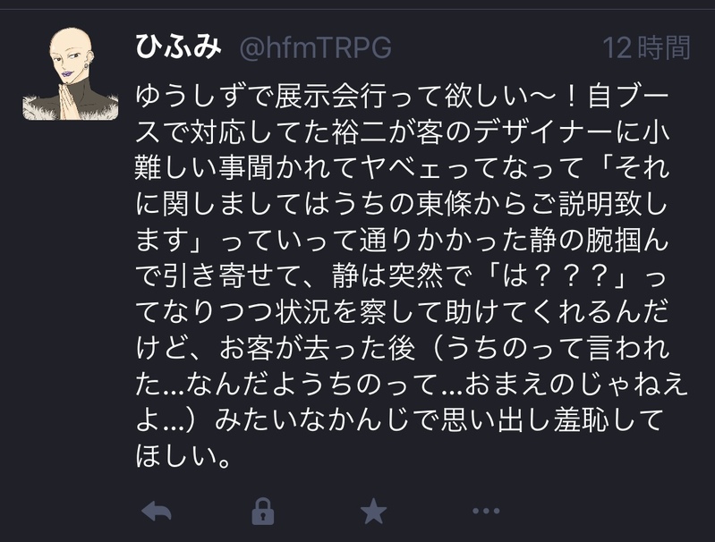 hfmTRPG☆quiet followMEMOゆうしず妄想(pawooサルベージ) Tap to full screen (size:1125x853).Repost is prohibited Let's send reactions! freqpopularsnackothersPayment processing Replies from the creator Follow creator you care about!☆quiet follow hfmTRPGDONE若鷲の双眸 HO狙撃手武藤権三郎「ゴンち★しゅっつじーーーーーーん!Foooooo!」 3 hfmTRPGDONE風の又三郎 / 泉亜紀久々の女子!女子する気さらさらないけど。 2 hfmTRPGDONE久遠の呼び声/KPC:高松渉※バレあり。現未×。pw:kuon hfmTRPGDONE灰になってよかった PC 尾瀬春一 hfmTRPGDONE████が消えた夏 PC 室崎修久々にちゃんとディスプレイ作った~! 2 hfmTRPGDONE箱詰めシンドロームウィリアム・W・ジョンソンこんな長い立ち絵初めてだよ。縦横比おかしい。