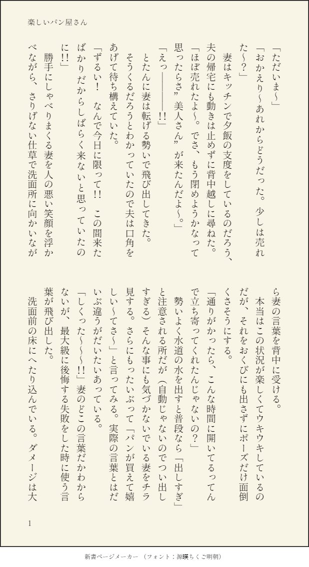 lilyooc☆quiet followDONE②「楽しいパン屋さん」モブからみた宜野座さんのこと。パン屋の店主と妻がぎのさんにミーハーしているだけの話。パン屋は私のよく行くお店たちからイメージしてます。シワさんの漫画から妄想が湧き出て、ついに狡噛も宜野座も出てこないものがでてきたよ。⇒https://twitter.com/Wrinkle_Baker/status/1552591343355961345 show all(+5 images) Tap to full screen (size:618x1132).Repost is prohibited Let's send reactions! freqpopularsnackothersPayment processing Replies from the creator Follow creator you care about!☆quiet follow lilyoocMAIKINGコウガミの誕生日の全貌は本当はこうだったのだったマウス絵色とかいろいろ書いたら楽しいだろうと思いつつ腕がプルプルするのでこの辺で lilyoocDONE朋さん@PaPamaxiprofのお誕生日に捧げたSSです朋さんから公開しては…との申し出に思い切って🤭【ダブルトモミの夢小説です!!】ので閲覧注意です私の昔からの友人とその推しの物語を考えるのが好きという謎癖がそのうちあなたとあなたの推しの物語も考えてしまうかもしれません… 2705 lilyoocDOODLEぎゃぐ漫画日和のトレース。フィットした。PP3の8話のこうぎの共闘からのケイチャンと対峙した時の絵がギャグマンガ日和ぽい、という発想からのらくがきです。過去最高のびました。 lilyoocSPOILER映画「新しき世界」の感想急にw2014年03月01日の感想転載 602 lilyoocDOODLEPPPの甲斐君の反応に感じたこと 711 lilyoocSPOILER注意!!PPPの映画のザックリ感想というか思ったことを書きなぐっただけ肝心の事はかいていない。朱さんを見て感じたことくらい。無駄に長くて、本編とはあまり関係ない覚書です。 2481 recommended works lilyoocTRAININGPPPの情報を知る度に、悲喜こもごも情緒がおかしくなる私ギノザー。自分でもどうにもできないもやもやしていたら、出てきた妄想。いろいろ事が片付いて、なんやかんやあって身の振り方が決まった狡噛と宜野座。2人が引退後、なんとなく世間から隔絶されて仲良く暮らしてる風な話の導入部をでっちあげた。ぎのさんは名前だけでてくる。狡噛の語り。続きません。深い事は考えてはダメ。 675 ulanonlyfansDOODLEstuck in wall/kabeshiri....... sakuramochi_1uvDOODLE飼い犬には首輪を。 sakuramochi_1uvDOODLE 2 GishPPP-RYUTANPAST【2/5】PSYCHO-PASS二次小説。涙は川の流れのように心を通り抜ける(2/5)3617字2、危うい心:狡噛が混沌の深みにハマらないように雑賀の分析と機転からつまらないジョークではぐらかす。 若干アレな話題が出るのでワンクッション構成は(1/5)の目次をご覧ください。https://poipiku.com/8521792/9191291.html 8 GishPPP-RYUTANPAST【3/5】PSYCHO-PASS二次小説。涙は川の流れのように心を通り抜ける(3/5)3720字3、極寒の夜・前:バスルームにて。 狡噛、新人監視官時代の回想(任務中車内) ベテラン執行官を引き連れて訪れた冬の山奥での夜。体を 寄せ合い温め合う狡噛・宜野座そんなに過激じゃないけれど一応配慮で・・・ 8 GishPPP-RYUTANPAST【4/5】PSYCHO-PASS二次小説。涙は川の流れのように心を通り抜ける(4/5)3415字4、極寒の夜・後:(3の続き) 回想:狡宜からの今軸バスルーム。一瞬だが狡セルフ描写あり 7 GishPPP-RYUTANPAST【5/5】PSYCHO-PASS二次小説。涙は川の流れのように心を通り抜ける(5/5)3500字5、後悔をしない男:監視官時代回想(宜野座の部屋) からの今軸、バスルームで狡噛の涙 雑賀からのメッセージ 8 noa_yuzuriDONEおやすみの口づけお母さんがいなくなった後も、お互いを励まし合い、心の支えや安心感を与えるために交わしていたとしたらそしてそれが成長してからも日々の習慣として続いているといい 2