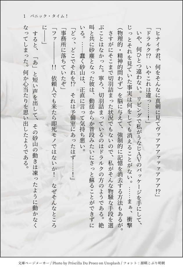 さらは☆quiet followDONE【吸死】パニック・タイム!【ドラヒナ】10/30頒布予定の本に収録。 show all(+16 images) Tap to full screen (size:630x928).Repost is prohibited Let's send reactions! freqpopularsnackothersPayment processing Replies from the creator Follow creator you care about!☆quiet follow さらはDONE【吸死】好奇心は猫を……?【アリスパロドラヒナ】アリスパロ設定/頒布作品『人生は短し 愛せよ隣人』の特典(副読本)に収録予定。◆説明急に思いついたので書いてみました。女王の物騒さを少し混ぜ混ぜ。パスはヒナちゃんの誕生日(数字4桁) さらはDONE【吸死】海の中の人魚、陸を知らず【人魚姫パロドラヒナ】人魚姫パロ設定/頒布作品『人生は短し 愛せよ隣人』の特典(副読本)に収録予定。◆説明一度は書いてみたかった人魚姫。井の中でも幸せな2人です。パスはヒナちゃんの誕生日(数字4桁) さらはDONE【吸死】雑貨屋店主も暇じゃない【中華パロドラヒナ】中華パロ設定/頒布作品『人生は短し 愛せよ隣人』の特典(副読本)に収録。◆説明考え中の独自設定で書いてみました。多くは書いてないので、設定などがわやわやかもしれませんが……。パスはヒナちゃんの誕生日(数字4桁) さらはDONE【吸死】つかれやすい君へ【ホラー風味ドラヒナ】ホラー風味設定/頒布作品『Carpe diem!!』の特典(副読本)に収録。◆説明ホラーと言いつつ、あまり怖くありません。あくまで”風味“程度です。 さらはDONE【吸死】純粋、ゆえに恐怖【ショタおねドラヒナ】ショタおね設定/頒布作品『Carpe diem!!』の特典(副読本)に収録。◆説明原作と同じように、完全に退行している設定です。真っ直ぐすぎて怖い状態を書きたかった。 さらはDONE【吸死】籠の中で愛でながら【反転ドラヒナ】反転設定/頒布作品『Carpe diem!!』の特典(副読本)に収録。◆説明反転時の性格などに関する公式設定がないので、好き勝手に書きました。畏怖さがもっと欲しい……。 recommended works れい🖋DONEらくがき…! 7 Chixaaa_DONEGeez rick, I can't handle your damn big hard dick anymore😥🥺 ナユタDOODLE🍑ガブッ おつ(うと)DONEのんびり宇煉🐶ドロライ✍️何も出ていないのですが、せんしちぶ案件な気がするので念のため大人向けで🙏(全くヱちくはないです!内容もないです😂)カッコ良い2人はおりません! jijangDOODLE menka0406DOODLE仙フェ◯ 18↑(y/n) おかずPROGRESSトンチキ構図に今年初めてブチ切れるなど。ネーム切っていた過去の私は何故これ描けると思ったのか。無茶言うな。手前の服が透けてるイメージなんですけど、頼むからマジで伝わって欲しいこのポーズ;;;進捗回復したので、諦めて切ったシーンも入れて全部で漫画本文35Pになりました。これで表紙諸々込みで40Pの予定です。た、楽し過ぎる~;;;; mznnknirDONEあいすぽよキャラシ 2 すいーDOODLE【あんスタ】①まとめ2024/4〜2025/1 12