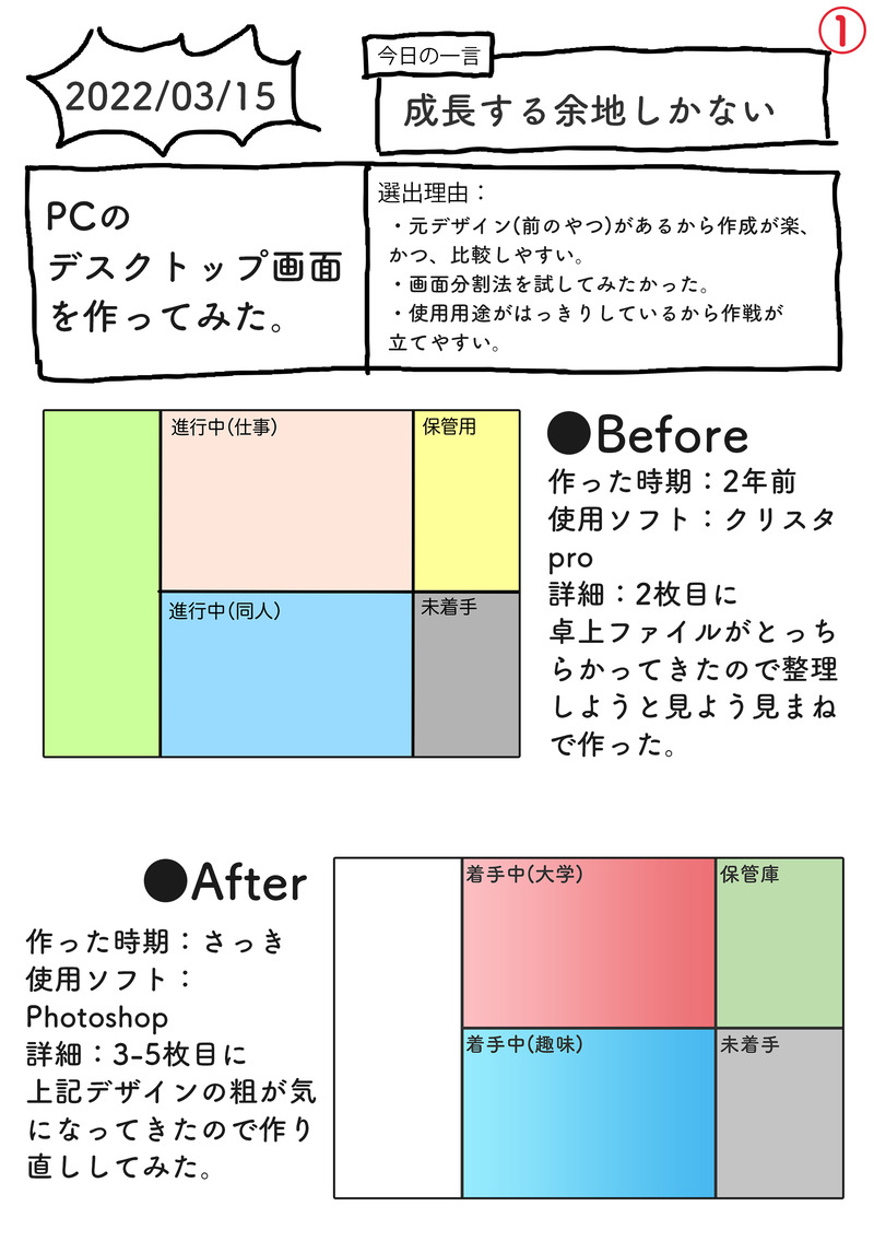 丹雲/日車☆quiet followDONEデザイン 1/100自分のデスクトップ画面を作り、師宛てにそれをまとめました。デザイン、単純でも奥が深い。小説とはまったく違う視点を得られる…。 ##デザイン100 show all(+5 images) Tap to full screen (size:2039x2894).Repost is prohibited Let's send reactions! freqpopularsnackothersPayment processing Replies from the creator Follow creator you care about!☆quiet follow 丹雲/日車DONEハンドメイド 2/1002022/7/10壊れた手持ちのキーホルダーなどをヤットコ使って修復。丸カンを付け直したり根付をうにうにしたりした。自力で直せるのいいな…。 丹雲/日車DONEデザイン 4/100というわけで下書きを元にPhotoshopで実際に作ってみた!もちろん師の指導が入ってるわけですが、随分綺麗に作れるようになったなあ。たのしい〜。 2 丹雲/日車PROGRESSデザイン 3/100サークルロゴが納品されてきたので、そのお披露目をしよう!という趣旨の画像を作るための下書き。師に提出したら「初心者卒業です」と言われた。レベルアップだ!! 2 丹雲/日車DONEデザイン 2/100SS名刺再録集の表紙を指導いただきつつつつ作成。作業としては難しい工程はないけど、デザインはバランスとかが奥深い……。とはいえ1回テンプレ作っちゃうと簡単にそこから改変できるからイイネ! 2 丹雲/日車SPUR MEヤスユキ塾(デザイン修行)用のノートに書くペンをからっぽペンで作りました。天色が自分の考えを書く用、躑躅が調べて分かったことを書く用です。 丹雲/日車DONE2022/03/16ハンドメイド 1/100まずは「やった感」を出そうと思って、推し(フィズくん)のイメージカラークリスタルでそれっぽいアクセサリーを作った。カニカン+丸カン+本体 2 recommended works ピータンTRAINING体練習💥🍰疲れた🍰くんを気にかける💥ちゃんステルススーツ好き☺️❤️こちらに載せることにしました🙇♀️いいねくださった方すみませんでした🙇♀️いつもありがとうございます🙇♀️❤️ sa0_uoDOODLE boneDOODLE あけるDONESanta Claus is coming to PLANT れあるDONEアスフォデロース🩵 3chumosakuTRAININGポイピクを久しぶりに使いたいので、Xの方で上げてたやつでちょっと練習です🙏 3 つるやまDOODLE待ち時間とかにちょっとずつ描いてたもの 4bsandayoDONE24.12.24 壁炉の家 BUKUノ院ミギマガリ君DONE⚠️🔞BL?pass 18↑yes/noマモンとサタンオソロコーデ。末裔♀出てくる。挿入ナシだけど♂同士絡みあり両方ケツにおもちゃ入れられてる。 13