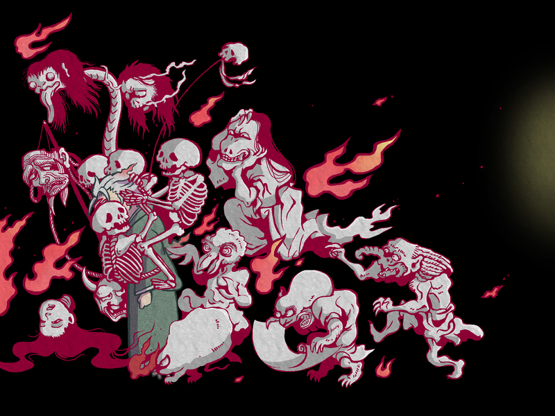 百鬼夜行みたいにしたいなと思ったら思いのほか不気味になったのでワンクッション。