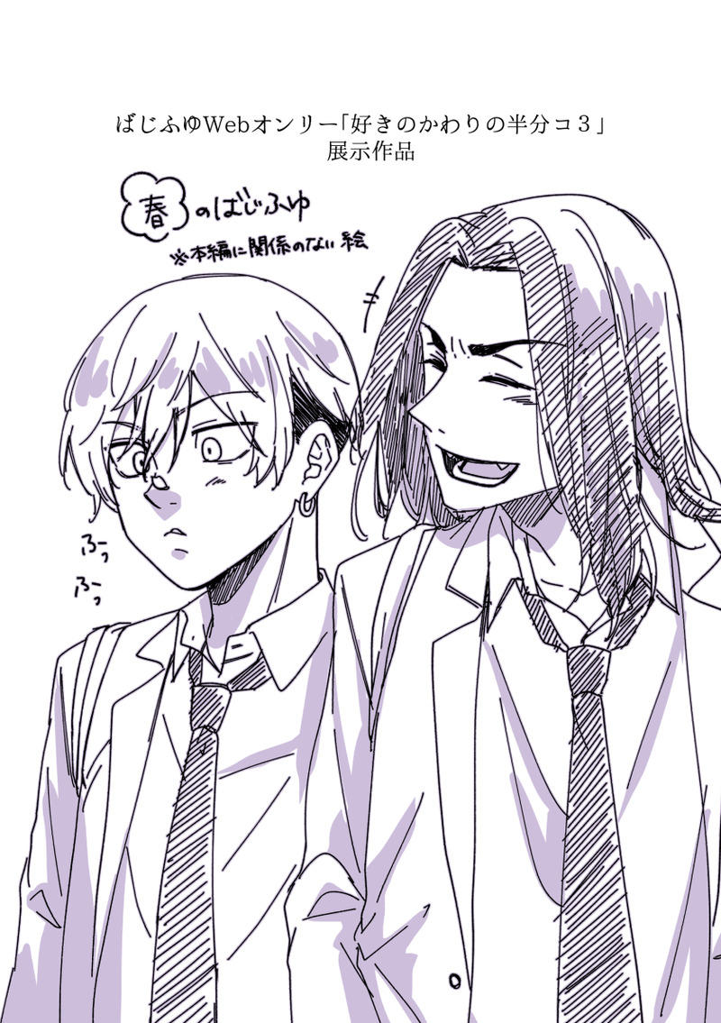 botan☆quiet followDONE2025.10.24~10.26「好き」のかわりの半分コ3 ばじふゆWebオンリー 春夏秋冬BJFY祭上記イベントの展示作品です。テーマは「春」です🌸🍡パスワードは会場内のスペース「あ09」にてご確認ください。 #ばじふゆ bajifuyu #好きかわ3 #好きのかわりの半分コ3 #ばじふゆWebオンリー show hide show all(+6 images) Tap to full screen (size:839x1191).Repost is prohibited Let's send reactions! freqpopularsnackothersPayment processing Replies from the creator Follow creator you care about!☆quiet follow botanDONE2025.10.24~10.26「好き」のかわりの半分コ3 ばじふゆWebオンリー 春夏秋冬BJFY祭上記イベントの展示作品です。テーマは「春」です🌸🍡パスワードは会場内のスペース「あ09」にてご確認ください。 7 botanDONE以前描いたラクガキを、らすりべ🎄🦌衣装に変えてみた!時間あったら色塗りたいな⏬3.25 完成したので追加しました!関節とかおかしいのはお許しください🙏 2 botanDONE2025.3.7~3.9 ばじふゆ両片想いWebオンリーイベント「好き」のかわりの半分コ2展示作品です!2025.3.14 追加&全体公開にしました!めちゃくちゃ途中ですが、続きは5月のスパコミで本にして頒布予定です! 12 botanDONEお正月に咲ちゃんと夢のコラボをしたイラスト(1枚目)とクロスオーバー漫画(3ページ)です!イラスト同様、合作させていただきました💓漫画原案&線画 牡丹コマ割り&背景&トーンとかその他諸々のほとんど 咲ちゃん⚠️以下の作品およびCPが絡んでおりますので、許せる方のみご覧ください。東京リベンジャーズ ばじふゆ(場地圭介×松野千冬)忘却バッテリー とどち(藤堂葵×千早瞬平) 4 botanDOODLEたまにはかっこいい❄️を描いてみる超絶rkgk 見なくてもいいやつ botanDOODLE不意打ちっす🐺❄️毎日寒いねぇ related works wara_pyngDONE閲覧ありがとうございます!好きかわ3開催おめでとうございます🎉千冬が場地さんと両思いになって付き合うために奮闘するお話です!恋愛要素薄くギャグっぽくなりました※たけみち他友情出演初めて漫画?を描いたのでおかしな点もあると思いますが暖かい目で見てくださると嬉しいです。お時間余った時にでもお読みくださいm(_ _)m※一部アイビスのトレス素材使用しております。 10 kokohagomibacoDONEすきかわ3の展示お漫画だゎょぇ💙🩵「秋」といったら「文化祭」なのょ🫵🫵⚠️このお漫画には、【女装】【ケモミミ(付け耳)】含まれておりマ゙!!覚悟の準備をして閲覧してくだ!!⚠️ 18 botanDONE2025.10.24~10.26「好き」のかわりの半分コ3 ばじふゆWebオンリー 春夏秋冬BJFY祭上記イベントの展示作品です。テーマは「春」です🌸🍡パスワードは会場内のスペース「あ09」にてご確認ください。 7 水戸@NOV_strikesDONE好きのかわりの半分コ3展示作品になります。「名残月」全年齢部分21ページ血ハロから最終軸を経て、十三夜を眺める両片想いの二人のお話です。R18部分の15ページを含めたものは新刊にてとらのあなさんより頒布です。よろしくお願いいたします。 21 higugamesDONEお尻にお薬塗る話🔞パスはお品書きにあります 8 sayaya_tw_1219DOODLE好きのかわりの半分コ3、夏がテーマです💮夏の大三角形の距離の測り方が好きで、ばじふゆに当てはめてみました。夏に始まる恋がある。夏に実る愛もある。夏のばじふゆ大好き。アフターがあればこの後の続きもあるかもないかも…。(ばじふゆの団地のモデルを実際にご覧になったことがある方はお察しかもしれませんが、橋はあの橋です) 6068 sayaya_tw_1219PAST好きのかわりの半分コ3、開催おめでとうございます!2年前の夏にTwitterにあげた後、収録せずにいた夏のばじふゆ話です。ログ本にも入っているものですが、ログ本を手に取って下さった方のほうがごく少数だと思うのでこの機会に再掲にしてみました。ばじふゆ民の皆様なら履修済み(のはず)スピオフが下敷きにあります。夏の暑さとヒュッとする背筋を感じていただけたら嬉しいです! 10000 higugamesDONEばじふゆ一緒に巻くと両想いになる?マフラーの話 6 recommended works ばく_DONEイヌココさっさと結婚してくれ! なつきDOODLEベロ出しマイキー髪色変更しました…… 2a_tsgDONEこれ→【世界は一虎を中心に回っている | りょうおん https://www.pixiv.net/novel/show.php?id=15980738 】の続きのようなものです。※モブ女性注意 13269 Hinato_CosPAST 3 Hinato_CosPROGRESS 7 botanDOODLEラムネ半分こ手ぐせ全開のrkgk mskDOODLE 3 納豆キノコDOODLE【東リベ】いろいろまとめました_(:3 」∠)_ 7 ren_ta11DONEばじふゆ オメガバース場地α×千冬Ωペトショ軸で、促進剤を使う千冬のおはなし。pass→over18?(yes or no) 9225