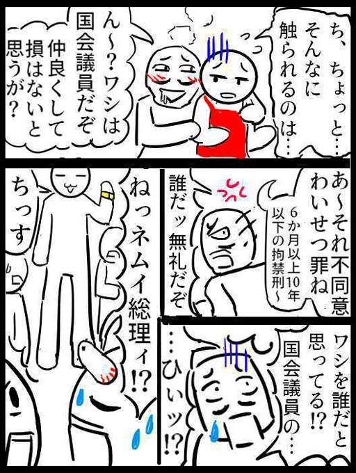 ねぎゅチュブ@サブ @negyutyubu2 現代日本社会の魔王、ネムイ総理の生態。他の政党のキャラの漫画は支部にアップしてます。 ☆quiet follow Yell with Emoji POIPOI 43