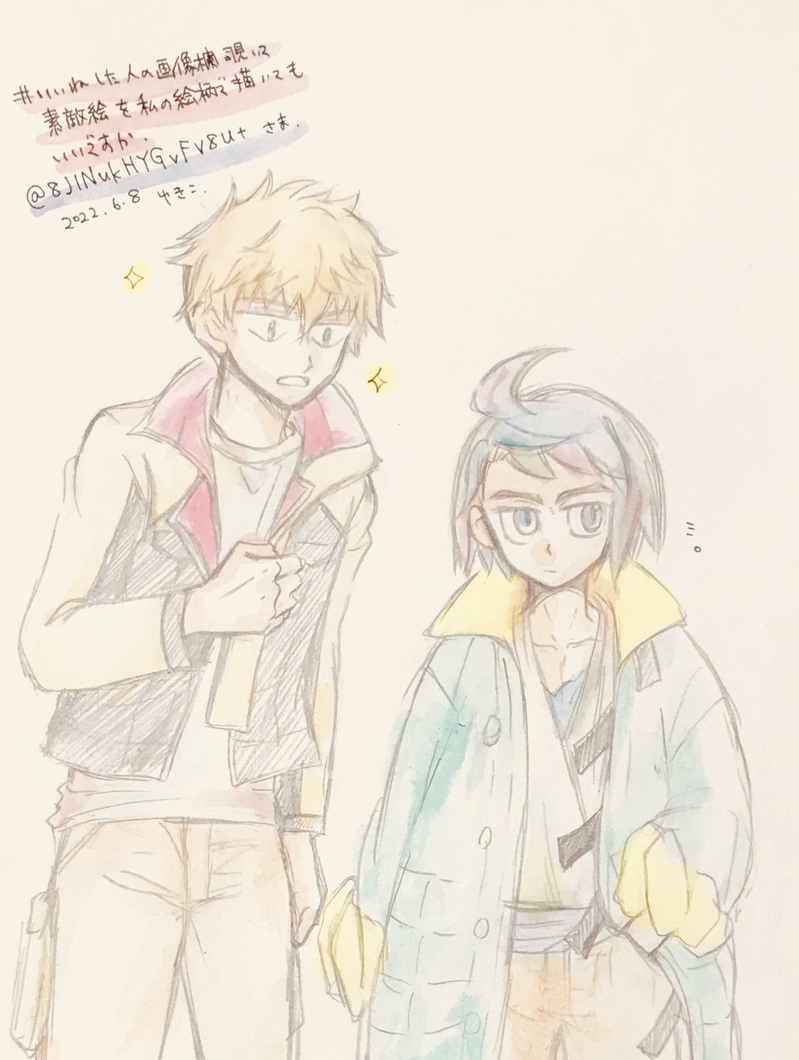 G9heKb☆quiet followDONE「いいねした人の画像欄覗いて素敵絵を私の絵柄で描いてもいいですか」タグで描かせていただいた絵。楽しいです。カッコいい絵とか、もっと自分と遠いものに挑戦したい気持ちがありつつ、せっかくの素敵な絵から遠く離れてしまうのが残念でできずにいる。 show all(+4 images) Tap to full screen (size:1712x2270).Repost is prohibited Let's send reactions! freqpopularsnackothersPayment processing Replies from the creator Follow creator you care about!☆quiet follow G9heKbDOODLEミカハシュ、はしゅはここにまとめよう多分ちょこちょこ描くから 2025/10/15 2 G9heKbDONE2025/10カウントダウン以外のお絵描き「なんか違うな、残念😢」と途中で諦めたアインやシノ絵が思いの外、好意的な反応いただけてびっくりした。ちゃんと仕上げればよかったなぁ。 7 G9heKbDONE鉄血映画公開までカウントダウン始めました2025/10/5〜新しい絵を上に置いていきますおねだりしてwaveboxで指定してもらって描いたキャラ→ライド、ミニキャラバルバトス、クキクラ、アイン、雪之丞さん、桜ちゃん+ビスケット、粋がる幼少or CGS時代オルガ、三日月さん+アトラ+クーデリア、アストン、タカキ、フミタン 27 G9heKbPROGRESS2025/10/3表紙水彩、長年の夢のカラー表紙に挑戦してみよう!と。上手くいくかなぁ… 3 G9heKbDOODLE 9 G9heKbPROGRESS2025/9/20 ベタやったノロノロすぎるしもう嫌になってきたけどやった分は進んだ9/22 朝活トーンした!偉い!9/24 ちょっとだけベタやった。偉い!9/28 (おやすみだけど)出勤したふりしてネカフェで原稿した。偉い!9/29 トーンやった。偉い!10/3 トーンと表紙やった。偉すぎる!10/7 トーンやった。偉い!もうちょい進めたかったけどまあでも少しでもやったから偉い! 7 recommended works 阿枫茶啊DOODLEsouthpark人物 8 ywanyanDOODLE樱桃品尝时间⚠️:69 下品 ooc 2 cfmDOODLE点图星刃车 2 ROMnoCapasityDOODLE竹柴さん失禁 💙ItzIrish_DLV💙DONESabrina🍑✨(My Disney 101 Dalmatians OC) signos_2ndDOODLEpass: 18over? (yes/no) 🍎真っ赤なリンゴDONEなんか変ですが完成 2 んにゃPROGRESSスイパラのビジュ、すき POI11021140DOODLE