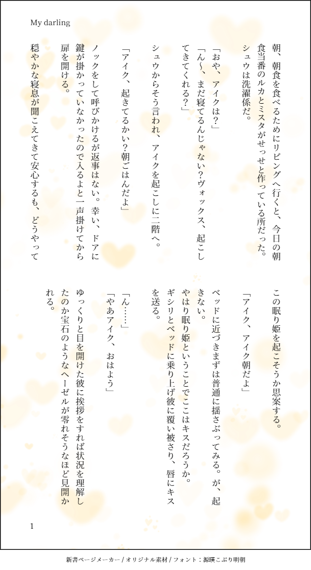 wataru_h_☆quiet followDONE【My darling】https://poipiku.com/4936915/9817667.htmlの続きラクシ5人同居設定❤💙 show all(+1 images) Tap to full screen (size:618x1132).Repost is prohibited Let's send reactions! freqpopularsnackothersPayment processing Replies from the creator Follow creator you care about!☆quiet follow wataru_h_DONE【小さな君と】中身は400歳のまま、体だけ小さくなった❤と💙の話。💙❤です。 7 wataru_h_DONE【秘密の愛】学パロのエキ×アイク(見ようによってはアイク×エキかも)です。友情出演👼と❤ 5 wataru_h_DONE【おれだけのちょうちょ】ショタエキ×ショタアイクと、ずっといっしょな話 3 wataru_h_DONE【求めよ、さらば与えられん】お題箱にいただいたリクエストを元に書いた👼🔪です。他に出てくるCPとして❤💙があります。モブレ表現(未遂)あり 10 wataru_h_DONE【たからもの】パスヒント:作者の誕生日(ツイッター(X)プロフ参照)4桁+18歳以上?3文字yukiさん@yuki17616506からいただいたリクエストを元に書いた👼🔪です若干のモブ×🔪あります 9 wataru_h_DONE【ちん騒動】パスヒント:作者の誕生日(ツイッター(X)プロフ参照)4桁+18歳以上?3文字しおにさん@knmt_crcrからいただいたリクエストを元に書いた👼🔪のアホエロです念の為背後に注意してください頭を空っぽにして読んでくださいアホエロです 4