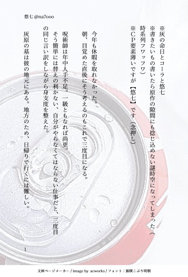 灰の命日とコーラと悠七