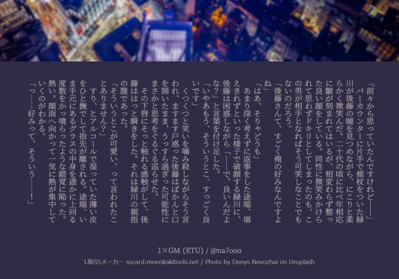 後藤の日なので書きかけのドリゴトを蔵出し(緑川ゲイ設定/移籍決定後にプライベートで飲みに行って~的な)
