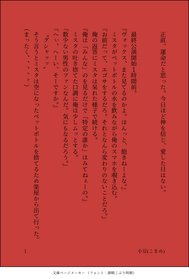小豆(こまめ)☆quiet followMAIKING❤️💜アイドルパロの続き②(前回のを見てからの方がいいかも)❤️🧡がユニットを組んでる💜は❤️のファン設定パスワード18↑yes/no #Shussy #Akumasutra show hide show all(+9 images) Tap to full screen (size:630x928).Repost is prohibited Let's send reactions! freqpopularsnackothersPayment processing Replies from the creator Follow creator you care about!☆quiet follow 小豆(こまめ)MAIKING💛💜花吐き病(続き)💜が花吐き病を患って苦しむ話嘔吐表現あり(苦手な人注意)パスワード 注意書きを理解したyes/no 10 小豆(こまめ)CAN’T MAKE🟡💜ナチュラル同棲🟡が仕事から帰ってきたら、、、?パスワード 地雷で無いyes/no 3 小豆(こまめ)MAIKING❤️💜アイドルパロの番外編(前回のを見た方がいいかも)❤️と🧡がユニット組んでる💜は❤️のファンまだ💜と❤️が出会う前の話パスワード18↑yes/no 6 小豆(こまめ)MAIKING💛💜💜が花吐き病を患って苦しむ話(今のところ💛💜要素少なめ)実際にある病気ではありません。嘔吐表現あり(苦手な人は注意)最後の一枚に花言葉の意味あります。(参考程度にどうぞ。)パスワード 注意を理解した yes/no 13 小豆(こまめ)CAN’T MAKE❤️💜社会人パロ別cpで作ったものの修正版パスワード18↑yes/no 2 小豆(こまめ)CAN’T MAKE🧡💜学パロ周りから優れた所がある人物だと思われてるけど、やらかすことも多くてどこか締まらないよな〜と言われてる🧡のことを、その点を全部理解したうえで世界一かっこいい彼氏だと思ってる💜のお話パスワード18↑yes/no 9 related works ぽぎENDONE❤️誕記念。❤️💜 誕生日と準備の話。#Akumasutra #Shussy #Shuvox 4 照清怜DOODLE盒K圆角 7591 Rhapsodie_69MOURNING遊びのつもりが、やらかした大人の話【中編】(メイン:👹+👟) #Shussy #Akumasutra #shuvox ☆何でも許せる方向け、☆人外味の強い👹さんがいます。☆流血・身体の痛々しい描写あり、☆18↓の方禁止少しでも、危ない予感がしたら読まないでください、 15 kokiakeringoDONE登場 らくしall待ちぼうけの鬼の続き+おまけ⚠わーにんぐ⚠👹に特殊設定有り、おそらく今作(前編含め)限りの設定特殊設定:招かれないと建物に入れない待ちぼうけ<前編>を読まないと分からないです 1249 karaageinn1125DOODLEグロ注意。女性の腸が見えてます 5 もののふDONE👹✖️🐏 腐ってるふーちゃんとずっとアピールしてるのに気づいてもらえないVoxの話(基本ふーちゃん視点)R18禁描写あり*キャラ崩壊、捏造、なんでもOKな方のみどうぞパスワードあなたは18歳以上ですか(yes/no) (高校生も閲覧禁止) 4619 _light2412_CAN’T MAKE👹📦🦊(❤️🧡)幼馴染設定(一卵性双生児👹📦、カントボーイ🦊)※♡濁点汚喘ぎあり、二輪挿し、3Pなんでも大丈夫な方のみお読みくださいパスワードは18↑? yes/no 5522 _light2412_CAN’T MAKE👹🦊(❤️🧡)監禁とは…?という設定要素の薄い、ただのエロ次回!🦊ママによる妊娠出産奮闘記!お楽しみに!(しないでください)⚠️監禁、男性妊娠、♡濁点喘ぎなんでも大丈夫な方のみお読みくださいパスワードは18↑? yes/no 7101 のーらんDONE👹×🐑(見ようによっては🐑👹?)👹🐑(🐑👹?)いつもより甘えたになった👹さんに調子が狂う🐑君の話。全年齢、甘々です。 1956 recommended works ね🍋のDOODLE ぽぎENDONE❤️💜 記念日の話。❤️視点。#Akumasutra #Shussy 5 shu_kun_sukiDONE❤💙 女装pass→💙の代名詞(You ○○○○○)(三文字) 3969 shu_kun_sukiDONE💛💜 天ノ川に願いを込めて。pass→💜の口癖三文字(小文字) 3644 uni_IntroDOODLE18↑ y/n 2 nu___nn3056MAIKINGお人形💜くんとの邂逅LとNがおシェハウしてます。 6 Chairl_askDOODLE牢犯shu✘狱警lucaAbo很雷 13632 ynyngyng1TRAINING 2 LofedDOODLE18? yes/no