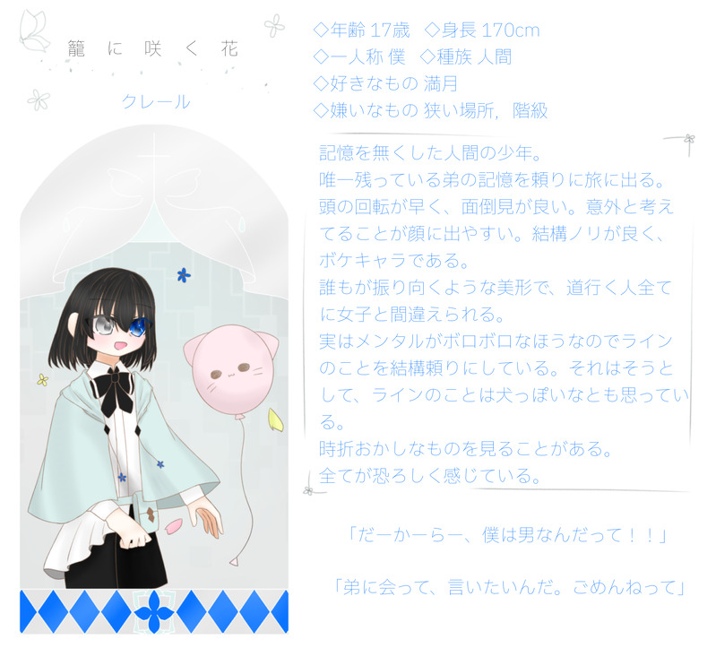 胡桃 𓏲( ˆ. ̫.ˆ)☆quiet followMEMO籠に咲く花 紹介文&キャラクタープロフィール show all(+3 images) Tap to full screen (size:1890x1710).Repost is prohibited Let's send reactions! freqpopularsnackothersPayment processing Replies from the creator Follow creator you care about!☆quiet follow 胡桃 𓏲( ˆ. ̫.ˆ)MEMO常夜の箱庭 キャラクタープロフィール 7 胡桃 𓏲( ˆ. ̫.ˆ)MEMO深夜徘徊譚 紹介文&キャラクタープロフィール 4 胡桃 𓏲( ˆ. ̫.ˆ)MEMO籠に咲く花 紹介文&キャラクタープロフィール 4