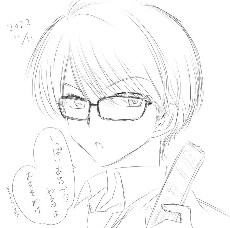 4人とも大袋のポッキー買ってきて大量発生したから配ってまわるユウキの図
