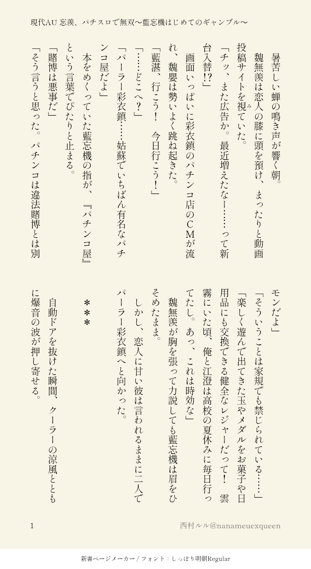 初めてパチンコ店に連れて行かれた藍湛が魏嬰と無双しまくるだけの現代AUです。