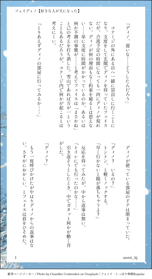 aumi_kj☆quiet followDONE【フェイディノ】好きな人が犬になった・フェイディノ+キース・Winter Fairytaleのディノのスペカネタです。・付き合ってない(両片思い)です。 show all(+5 images) Tap to full screen (size:618x1132).Repost is prohibited Let's send reactions! freqpopularsnackothersPayment processing Replies from the creator Follow creator you care about!☆quiet follow aumi_kjDONE【フェイディノ】好きな人が犬になった・フェイディノ+キース・Winter Fairytaleのディノのスペカネタです。・付き合ってない(両片思い)です。 6 aumi_kjDONE【フェイディノ】押忍エリ時空のシリーズ。(2023/02)この前:③https://poipiku.com/4966319/8342401.html1~4P:キースとフェイス うわさの二人同士の初迎合5~11P:フェイスとディノ 答え合わせ回 11 aumi_kjDONE【フェイディノ】押忍エリ時空のシリーズ。(2023/02)この前:②https://poipiku.com/4966319/7529326.html1~4P:フェイスとディノ 冬の訪れとすれ違い5~8P:キースとディノ 親友で同僚で腐れ縁次:④https://poipiku.com/4966319/8342429.html 8 aumi_kjDOODLE【キスジュニ/フェイディノ】キスジュニのキとフェイディノのフェがパンケーキが出来るまでとりとめのないおしゃべりをしているSS。※カプ複合なのでご注意ください!!!(2023/1) 4 aumi_kjDOODLE正月イベ時エリチャンのキースの料理番組ネタSS/西4人/カプ無し(2023/1) 3 aumi_kjDONE【ウィルシャム】観覧車デートの話。(2022/9に書いた話)※イクリプスとの戦いが終息した後でシャムスはエリオスで保護監察処分となっています。特に前回の話しとは繋がってはいません。※1箇所、ウィルの台詞の「俺」が「オレ」になってしまっています。 4 recommended works rC5JeZOPovKjt3TDOODLEとうひゅ〜〜〜〜〜!ちょっと如何わしい普通に(?)ヤってるのも増やしたのでr18にしました 4 わるもぐらDONE2025年もよろしくお願い致します〜抜け殻描くの難し楽しかった〜 ᜊﬞﬞDOODLE🐦⬛右※学隊※背後注意 なるこDOODLE山井とトトロその2夜な夜な1人でトトロ見る山井、描きたくなってかいちゃったわwww#なるこ絵描き 葵琥珀DONE【拷問】三角木馬『まぞひすと』だからちょっと気持ちよさそうって思ってしまう 置き場DONE桃源暗鬼 / 一ノ瀬四季 hxp147258DOODLEFENDI公式男子人気レディース iphone16 15スマホケースの通販https://foolcase.com/goods-fendi-iphone-15-case-136.html tmsk_ymDONEタッチでしゅ! enuk3815DOODLE明日は晴れてくれるかなーーー秒針が鳴る のやつの黒髪視点。同じ場所で同じ時間を過ごしてるのに見えてる世界が全然違うのっていいよねという話でした(そうだっけ) 2