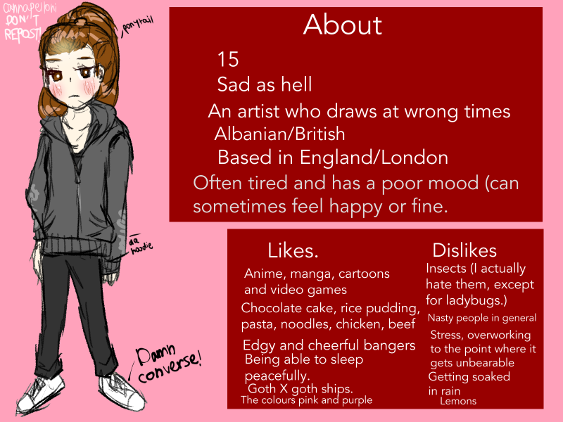 A teenager who does painting, whenever it's franchises that she likes or her own characters.