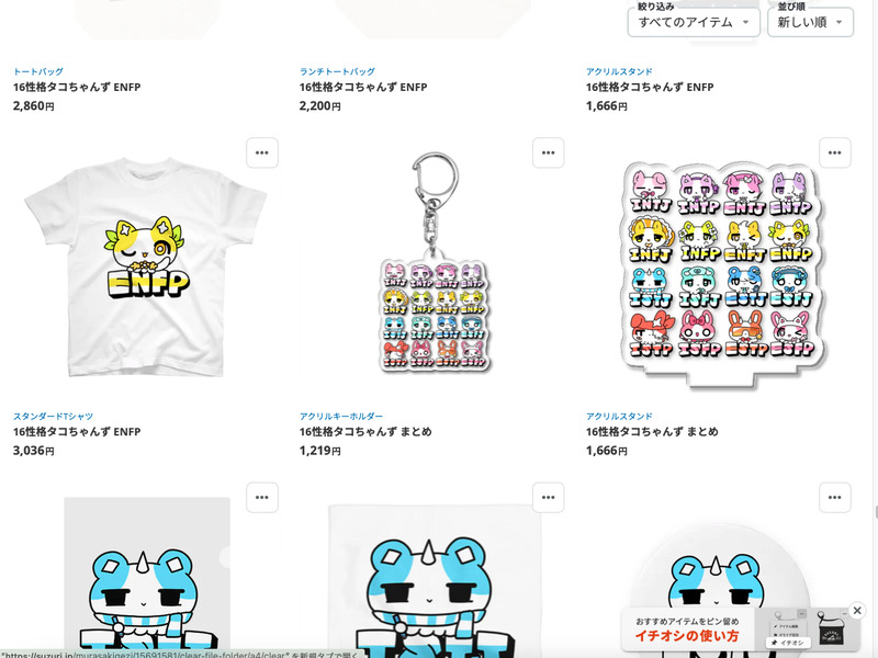 suzuriとBOOTHに16性格タコちゃんずグッズを登録したYO