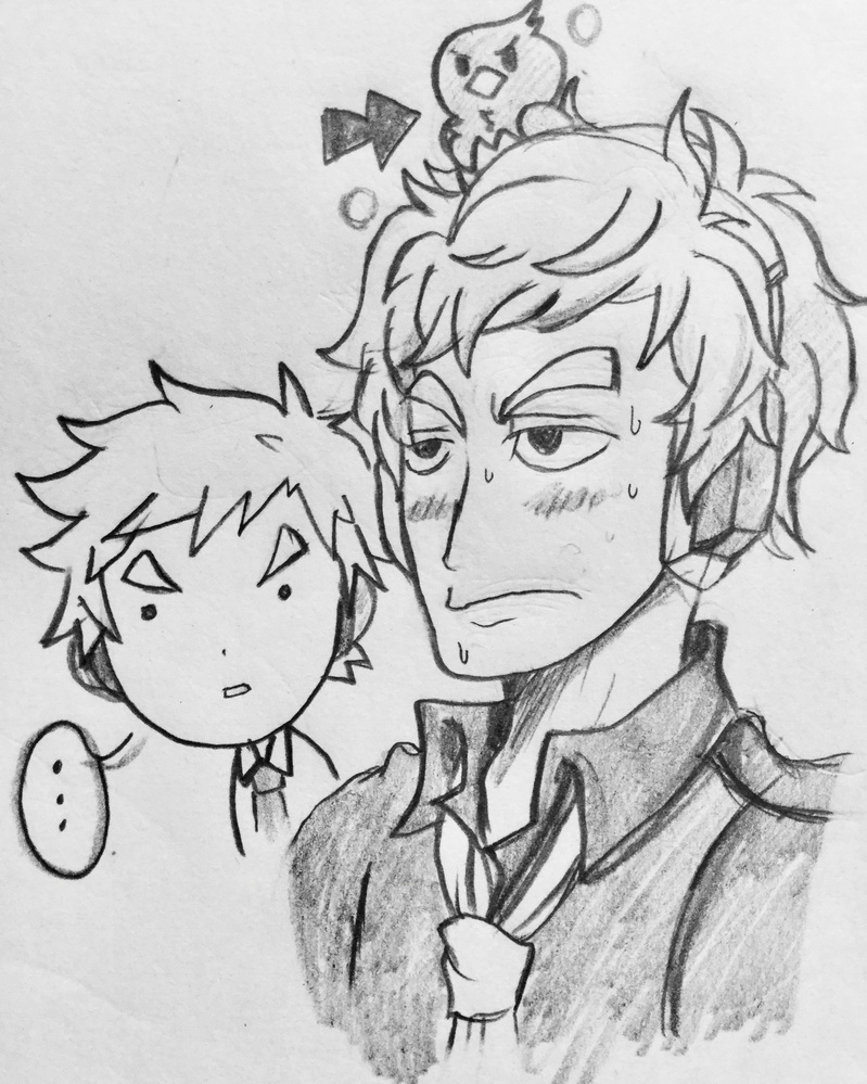 10先生とラピス先生。10先生は頭ツンツンに描くのが癖。