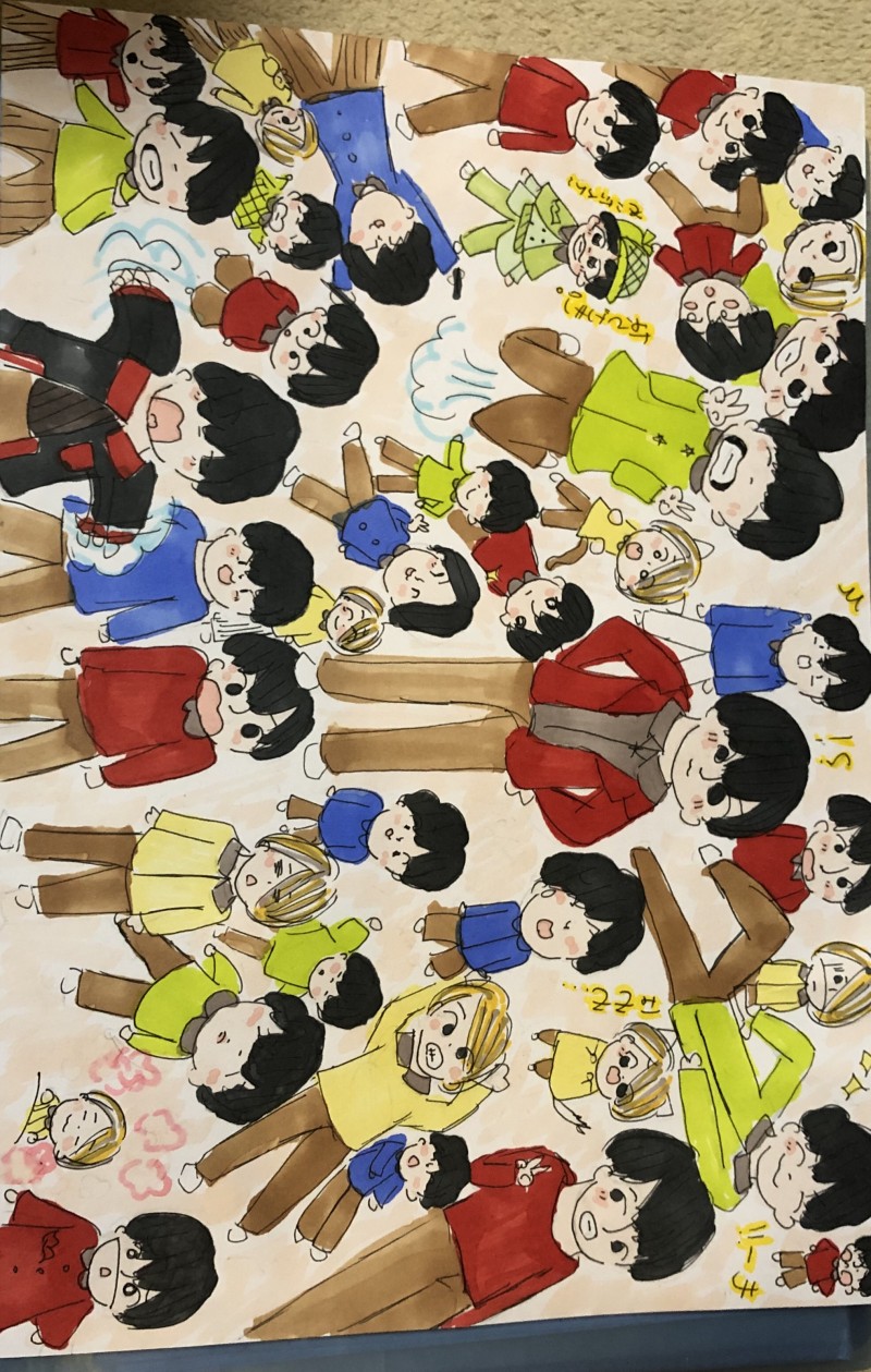 詰め込んで一枚の絵に描くのが好きです!ギュギュっとした感じがいいですよね…いつもは線画までもいかないのですが、色塗りをしてみました…楽しいですね!!またやりたいです。