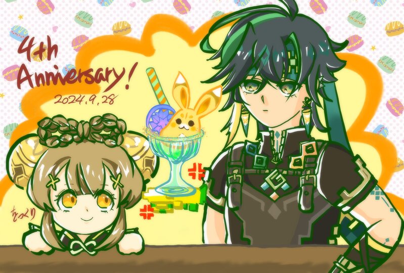 某所に投稿したキィニチくんヒット祈願と原神4周年のお祝いをドッキングさせたもの。描けば出るとは云うけれど、まさか投稿したその日の夜に会えるとは思ってなかったのよ。フラグ回収が早い。