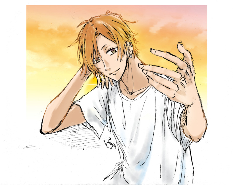 最初は夕焼け背景に佐々木先輩の髪が透けるようなイメージで描いてました。