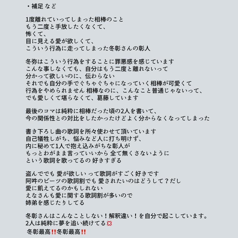 ꒰ঌ🤍໒꒱☆quiet followDOODLE冬彰の漫画の補足などです💦(文字だけ、キモイ) Tap to full screen (size:1280x1280).Repost is prohibited Let's send reactions! freqpopularsnackothersPayment processing Replies from the creator Follow creator you care about!☆quiet follow ꒰ঌ🤍໒꒱DOODLE冬彰の漫画の補足などです💦(文字だけ、キモイ) ꒰ঌ🤍໒꒱DOODLE冬彰の漫画です ⚠︎ぬるいですが行為の描写があります ꒰ঌ🤍໒꒱DOODLE冬彰 ⚠︎微センシティブらくがきと再掲 2 ꒰ঌ🤍໒꒱DOODLE冬彰落書き漫画(縦読みです) ⚠︎ぬるいけど行為の表現があります 恥‼️😅💦 ꒰ঌ🤍໒꒱DOODLE冬彰の落書き漫画(縦読みです!)+激痛ポエムです彰人の情緒が不安定すぎる 2 ꒰ঌ🤍໒꒱DOODLE⚠︎︎性転換 冬彰 らくがき漫画+再掲 3 recommended works tuk391INFOCoC『yarazunoame』作:popo様※敬称略KP:よんHO1暑雨:teco / 初瀬 心来HO2驟雨:つしろ / 氏家 紲夏END C:両生還 いしるDONE百冬実でコラージュ※🦋苦手な方はご注意ください 2 Na_SaSa_321DOODLE寧々ちゃん。またいつかちゃんと完成させてあげたいなぁ〜 ひまわりねこDOODLEメモ用紙に書いたジュリちゃん!自分の使用カラーに塗ってみたやつ。#スト6 ranmao_cosDONE※誤字雑字多め 29730 aiyadayo_DOODLEまじ何回も喧しくてごめんなんだけど🐣🌾よい~!!! 3 RezeDOODLE @YUgAM9PUDOODLE ケルトン猫DOODLE猫娟 猴妖阿猫x木棉花精娟 2