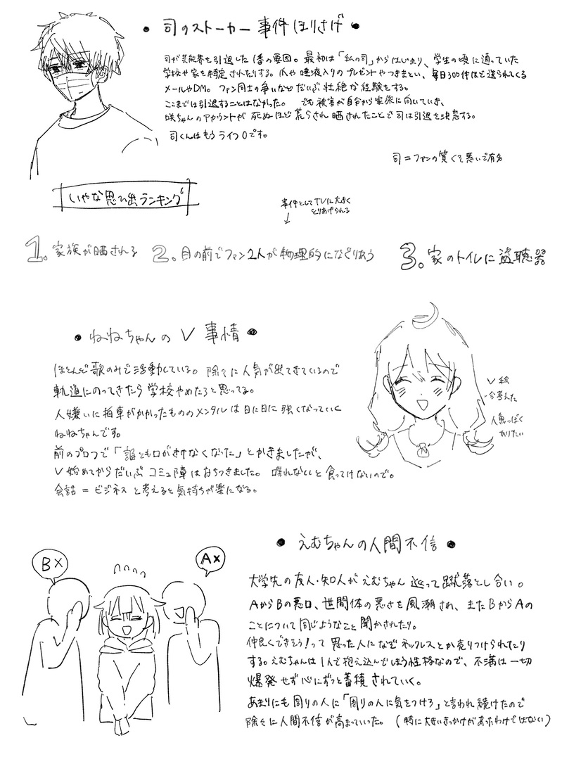 いや!☆quiet followDONE5ダショの質問があったことまとめ🌟のストーカー事件🤖のVⓂ️ちゃんの人間不信過程🎈の最近の悩み です show all(+1 images) Tap to full screen (size:1645x2235).Repost is prohibited Let's send reactions! freqpopularsnackothersPayment processing Replies from the creator Follow creator you care about!☆quiet follow いや!MEMOあとがき兼質問コーナーです。 いや!DONE5ダショ更新です。今回は進展とかはありませんが、みんなの関係性を印象強く描きました。こういう形で更新時にリクエストや質問に答えていきたいと思います。 9 いや!DONE5ダショ更新です。見方によっては司えむ(未満)です。 4 いや!DONE5ダショの質問があったことまとめ🌟のストーカー事件🤖のVⓂ️ちゃんの人間不信過程🎈の最近の悩み です 2 いや!DONE二次創作5ダショifの🌟🐰リクエストありがとうございました。こっちの方向にどう持っていくか考えるのが楽しかったです。^_− ☆ 11 いや!MOURNING屋のセカイのわんだしょ。前あげてたやつ消しちゃったのでこちらで自衛してどうぞ。 4