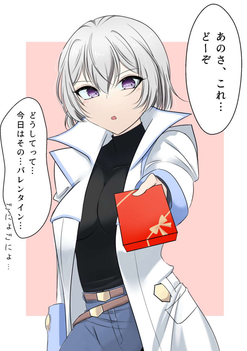凄く戸惑いながら受け取るユリおじちゃん。ユリとしては、そまからバレンタインのチョコが贈られるとは思ってもいなかったとかそういうの好き。ユリにとってそまは日常の象徴で尊い存在であり、そまから近付いてくるような行動を取られると、どうしていいのか分からなくなってくれ(願望)