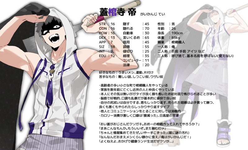お気に入り探索者の蓋棺寺です お気に入りすぎて神我狩から設定を持ってきました