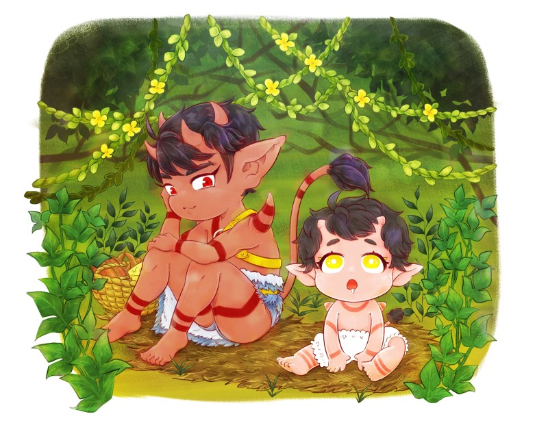 ふたりは同郷でもなんでもないし年齢差的にこの図はありえないけど、オーガ子供の体の模様が描きたかったので✍️